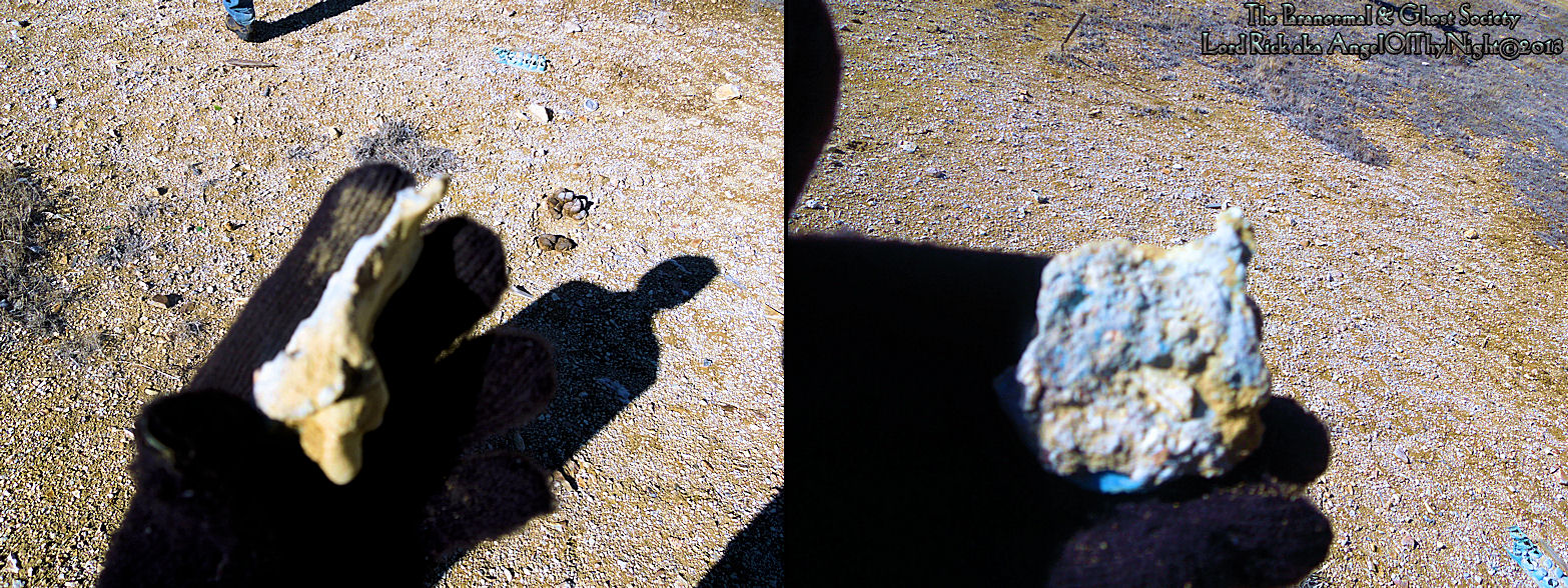 This is the bone we found fused with blue plastic. I am sorry it is a bit blurry I did not put the camera on macro as I was in the middle of taking readings and evps at the time. Someone may have had a fire going and through the bone in with trash where it fused with this bone fragment.