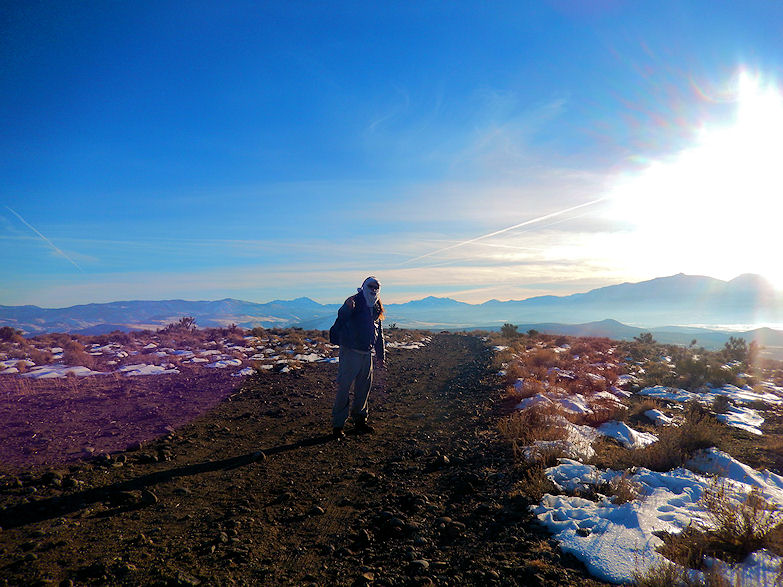 When we made it to the top we took a bunch of scenic photos of the snow covered Pine Nut and Carson Mountains. You could also see the snow covered sierras but the one thing that stands out most is that this area is very rural. I understand it was home to the Washoe for over 10,000 years and I hope some of them will talk to me about those lights overtime as trust develops. We have had our differences but I will not judge them on the color of their skin nor should they mine but rather what is in the soul.  I have talked to a few Washoe tribal members at least the ones who want to come forward and told me that they had family that witnessed day time UFOs in this region.
