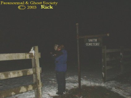 Smith Cemetery is more of a private little cemetery not to far from Snyder Cemetery down the road. This one is over a century old roughly 2-3 acres and is surrounded by a wooden fence sort of looks like your visiting a horse ranch. I could not find much information about it just that the Smith family has many burials for a few generations. The cemetery is not overly haunted although a large glowing ball of light I seen I got on film. It makes you curious to wonder more about the Smith family were they peaceful people? Did the men fight in the war? Who were they what did they do! Even though we enjoy visiting cemeteries we care also about the history not just that it is haunted or that there might be a ghost there. Perhaps getting to know the Smiths family's history might increase paranormal activity here. Jim told me for years there use to be rod iron surrounding the cemetery and now the wood fence looks recent perhaps they took that out and made the cemetery public rather then private. Most of the activity here that occurs is near the largest stone in the center of this old cemetery. © Rick-AngelOfThyNight |