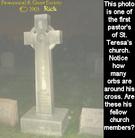 Subj: [ParanormalGhostSociety] Last Nights Investigation Report Date: 8/17/2003 12:06:25 PM Eastern Daylight Time From: AngelOfThyNight@aol.com To: ParanormalBuffalo@yahoogroups.com , paranormalghostsociety@yahoogroups.com St Teresa's Cemetery I decided to investigate this area since it was close to Evergreen Lawn Cemetery. This cemetery was alot newer and did not have the rolling hills, or giant oak and every green trees just basic headstones from front to back. I pretty much worked my way from the back area all the way to the front. Although I did not experience much activity I was waiting on Jason to catch up when a rock was thrown at me. It did not hit me but a foot away there was a big thump like something hit the ground. I could feel it because I was standing still. I did not take this as a friendly gesture to me it sounded like something was upset and wanted us out of there. I stuck it through and was pretty cautious after that because yes ghost can throw objects and yes they can hit you in the head. So we worked our way up to the front and back into Evergreen Lawn Cemetery again as I said goodbye and backed out of its long gravel road on the hill. Then we decided to head off to the Lancaster Ghost Trains. |