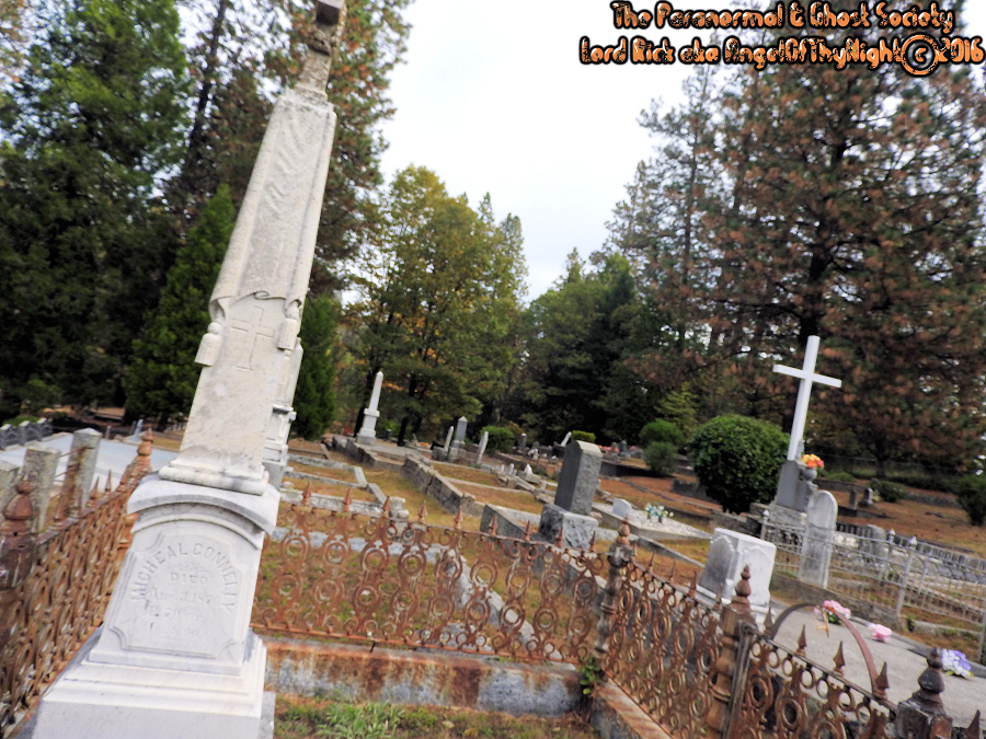Saint Canice Cemetery is the only historic Catholic Cemetery in Nevada Cemetery established by the St. Canice Church. The first burial that took place here as 1887 so yeah its not as old as the Nevada City Pioneer Cemetery in Nevada City it is very well maintained by the church. Most of the graves are masons or other families of fraternal groups so they are very beautifully done. The cemetery sits at the top of Broad Street and yes its supposed to be haunted. A while back ago vandals took spray-paint to many of the stones and crosses but the caretakers were able to remove most of it. While it may be maintained it has its fair share of crumbling stones that you could tell were pushed over. The reason why I guess I work on little projects like this is to teach others to admire the history thru photography as we have done for all of you. The cemetery symbolizes the rich history of the town and of the people who came here building it up to make it the city it is today. Without them this town would have become a ghost town just like many others nearby we visited nearby. It offers a variety of crafted gravestones and monuments and a glimpse into the lives of those who once called Nevada City California home. All meanwhile by being surrounded with lush greenery, large trees and peaceful landscapes. Supposedly their is almost a thousand headstones here its rather tight but it does not seem like it many graves date back to the 1800's and some interments are newer so unlike the pioneer cemetery this one gets a little more usage. Copyright By Lord Rick aka AngelOfThyNight