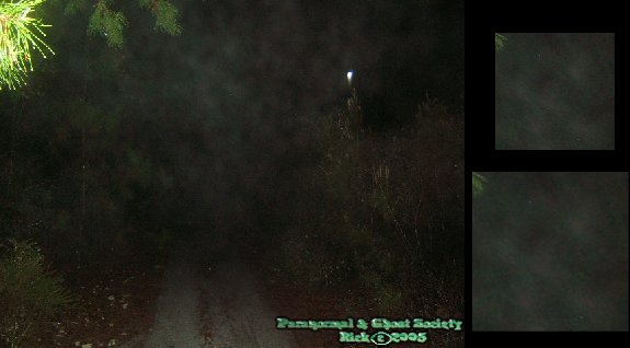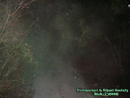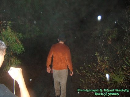 Subj: [ParanormalFlorida] Last Night's Adventure Report Date: 2/27/2005 10:41:06 PM Eastern Standard Time From: AngelOfThyNight@aol.com To: ParanormalBuffalo@yahoogroups.com, paranormalghostsociety@yahoogroups.com, Paranormalflorida@yahoogroups.com, ParanormalGhostSociety@groups.msn.com CC: rasolasascendant@hotmail.com, parapackboy@hotmail.com Stark Plantation Investigation 2 Well here we are back a second day in search of the elusive Stark Plantation. This time we were a couple miles away from Friday's first investigation. It actually is the right area we were in because today I did some further research and analyzations. But I had visited the site earlier during the day and my son told me he felt watched out there. Anyhow we parked near some train tracks and hiked up a long dirt road in the woods. We were unable to drive since the sand was to deep. We seen a sneaker in the middle of the dirt road which was not there just a few hours before I visited to scope the area out so in my opinion that kind of struck me odd. We kept walking and came out along a railroad bed and to the left was the first hiking trail I showed the team. This trail is full of weird feelings but not good ones in my opinion. It almost feels like maybe at one time a murder took place in this area or something bad occurred. We did hike up it to a fire pit and a downed tree. I felt that the trail went further and then Lee took out his blade chopping through brush and sure enough the trail continued on. As we kept walking through the narrow overgrown trail it seemed many trees blocked our path. It was hard because we had to get on our hands and knees crawling through bushes, pine trees, and tunnels of bark. We eventually came out to a more cleaner trail where less trees were down. The trail was not to bad except that we heard some strange beastly noises not to far away in the woods. It sounded like grunting but something very big. I am not sure but to me its possible it was a bigfoot. I know that these woods a few miles away will lead you into skunk ape territory so its not impossible that something was here with us. We hiked for quite a ways and it took awhile this was a very slow moving type of trail and as we got farther away I no longer heard any strange noises. Eventually the trail took us to a giant open field there was some sort of relief and then we started to journey across the giant grassy field. We came across another trail which had many no trespassing signs and barbed wire across it to keep others out. On a psychic level I felt we were real close to this mansion in the woods. Someone went through alot of trouble to not only keep people out but to make it clear that they were protecting something back here. We took the trail it was fairly straight and cleaned up so no problems walking throughout it till we came up to a larger open area. The open area had three trails the left, right and of course the middle trail which was extremely overgrown. I went off on my own to the right where there was some barbed wire and felt an entity coming down the trail. I felt it was a younger ghostly lady trying to tell me something. I could sense it getting colder and colder. From the photos it appears to be a lady and you can see her energy approaching me in the few photos taken. So we decided to take the trail where there was alot of ghostly energy on. That trail we did take and it led us to the railroad bed just further down from where we parked. The guys took a break and I took some more photos. It seemed we were followed the whole way. We then backtracked down the trail and took the middle path. The path was very overgrown and only wide enough for us to walk in single file. This path was very unfriendly and I did not feel anything ghostly or beastly here. But we took this trail for over an hour and half probably climbing on the ground, twisting and turning, climbing over trees down. At this point our lights were all dimming and the area was so over grown I could barely even see the sky. We were so deep in the woods there was no signs anybody had been back here for years. There was no litter, no quad tracks, no human tracks either. At times down the path we would see a few smaller more narrow paths where they led I do not know. The night was becoming very tiresome lets put it this way we had been hiking for three hours and that whole time rain had been coming down steadily. So at this point all of us were very muddy and dripping wet. This adventure we were on was more then an investigation but it was a quest. It was more about pride and strength pushing on to find this hidden mansion in the woods. Each step we took was a step closer to perhaps finding a paranormal jewel. Eventually the trail ended at this wall of brush that was twelve feet high. Even studying Ariel maps from a couple thousand feet up this wall is very visible for some reason. The land sunk down and Lee felt it was swamp land. By this time we had entered our third eco system from scrub, pinewoods to swampy grounds. We turned back and took another trail one that was very bandwagon like with higher dirt walls. At this point that trail dead ended us too so we took another route off the trail. That trail was quite rough lots of twist and turns. Even going back for us would have been a couple hour trip so we took this new way hoping it would take us to an area which would give us some relief. Eventually we came out by the railroad bed as I climbed out of some bushes. We were really out in the middle of nowhere there was no houses just train tracks, giant sand walls, and woods. We had a choice which was walk down the rail bed which would lead us to a state park or back to the car. After getting our bearing we made our way back down the rail bed. At this time at least a few freight trains had passed throughout the night. Its amazing how you do not see or hear them till they are right up on you. We then came across an area near the woods with kids toys and other it
