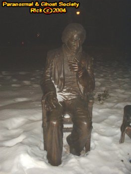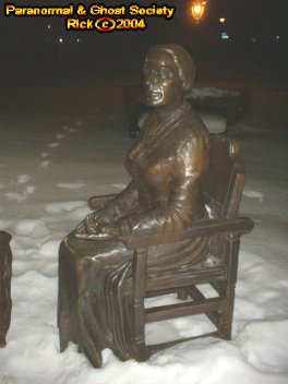Susan B. Anthony Square also at one time known as Madison Square which in the 1970s that is when the named changed. It displays Fredrick Douglas who was a an escaped slave who sought to end slavery and Anthony having tea and talking as if they were sitting on the porch of her house. The park near the house where Susan B. Anthony resided for over 40 years is surrounded by many Victorian houses that were built from the 1800s. Some of the mansions are very haunted but they symbolized the middle class of Rochester and still today many stand. Susan B. Anthony was one of the first woman to vote and was arrested in 1872 because of her attempt. So another wards what I am trying to get at here is there is alot of history to her house and the park which is right across the street from it. Perhaps this is why the park itself is so haunted over the years many passed some very prominent who would sit on Anthony's porch and talk about civil rights so the house served as her headquarters for many years. Perhaps this is why I chose to investigate this place but I feel that perhaps the park at one time served as some burial ground this is the feeling I captured as I slowly walked around. It is as if it was a potters field and the park was built over it to cover its true meaning. But the park itself has alot of energy even today as it served a purpose and perhaps this is why spirits come to rest here. Often people when they hear about ghost they think about haunted houses not pleasant parks with trees and benches. However the park served as a place for women's rights gatherings many people spent there life fighting for those lives which in turn of course would leave many spirits restless or still perhaps a part of the park because of what it symbolized. I spent more time at the park then the Anthony home which is now used as a museum. But I have accomplished everything you can think of dealing with Susan B Anthony. I have been to her gravestone, the hotel she use to stay at, her house and now the park which she gathered many to convey equal rights for women. Below you will find a little more history about Anthony herself and perhaps I even captured her on film. So take a stroll with us past the old lamps, wood benches, copper statues, twisted trees into this old historical park. © By Rick-AngelOfThyNight Susan Brownell Anthony (1820-1906), reformer, suffragist