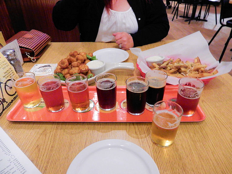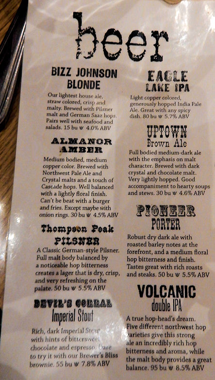 I ordered an ale tray which is something like 7 oz glasses with every type of ale here which included just to name a few a Devils Corral, Bizz Johnson Blonde, Thompson Peak Pilsner and even a Volcanic Ale. I drank all eight beers did not take long they were good and I was going to have me some beers. We sat next to a window where you could see the brewery's machinery with each tank labeled. I been to allot of breweries the past few years Lassen Ale Works as it stands so far is number 1. The girls are cute and people are just enjoying themselves of course you can see why good beer good eats equals good customer lol.