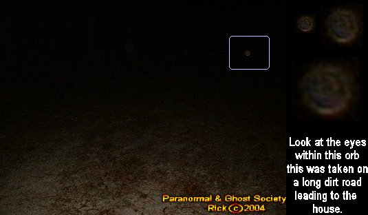 We ended up backtracking and came to a gate near the road with a dirt road leading somewhere in the heart of the woods. Tammy and I walked it and it was very very cold. I was freezing to death and right away I caught something in my flash it looked like a giant face coming right at us in the brief view of it.