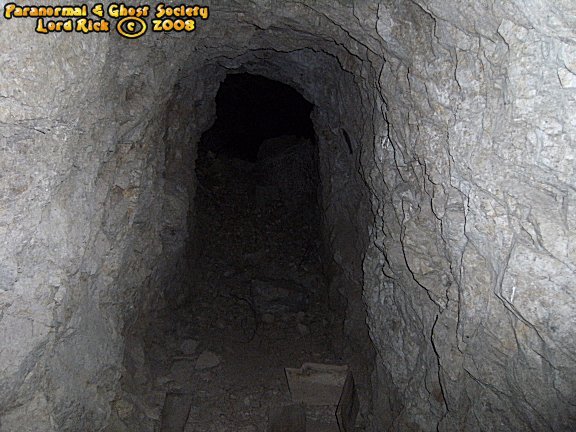 The Gettysburg Mine sits up on a mountain with a deep canyon bordering it. As far as I know their are 3 entrances and the 4th one is at the time of a rectangle like peak which is a deep steep shaft. You could technically climb the shaft to the top and come out onto the peak. We noticed some old rails within the mine but its not a large place the first tunnel splits in a Y one way is a dead end and the other leads up a shaft that comes out at the peak. The other two sit on a very steep ridge and both connect. The one tunnel you climb up the shaft then cut to the left down a crawling tunnel and down a steep shaft which comes out the third tunnel. Its a pretty interesting place and the people who owned it named it after the town of Gettysburg which they were from that area. It does not look as large as the Pittsburgh or Jubilee but it did have have various sorts of mining within it such as tunnels, rails, and vertical shafts. Boot pointed out here some of the fault lines that the miners dug into which means some level of danger could occur if an earthquake were to happen while in this mine. In front of this mine or near it was the old stone cabin of the little oriental guy who processed the gold at the processing area and stamp mill just across from the caverns of the Gettysburg. © By Lord Rick