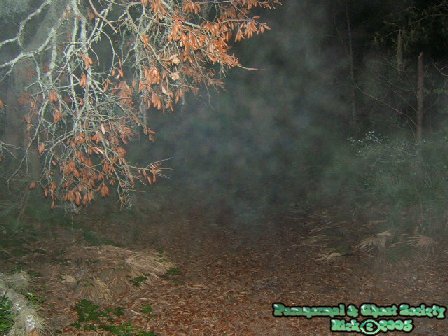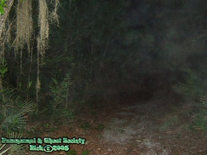 We started to hike down the trail it was a fairly warm night but when you hit a cold spot it was very obvious. Many times we hit cold spots not to often but at certain times they were strong or rather the temperature dropped 10 degrees which is quite drastic. Whenever it dropped that is when I seen the ectoplasm in the flash. Lee said he seen quite a few entities pull away whenever I took a photo or rather go the opposite direction.