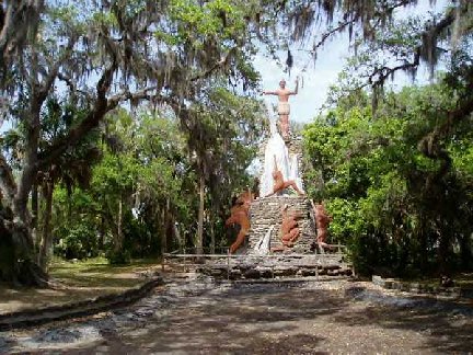 Along the Tomoka & Halifax rivers lays a peninsula surrounded by rich lagoons, a barrier island, basins and 1000s of acres of forest which was a very well hidden area used by the Timucuan Indians. This area would protect them from hurricanes and other threats. This Indian village was called Nocoroco and is said to date all the way back from the late St. Johns period or prehistoric times. A Spanish explorer Alvaro Mexia in 1605 documented this Indian village on his travels and it is said this was one of the last Timucuan strong holds as many other tribes near the St. Johns river were being forced off there lands such as the ones in the Blue springs area. Near the village lies the Strickland Mound and other smaller mounds which contained coquina middens and many burials. There was also some pottery and other artifacts found that date back to the middle Archaic period. So the site here is extremely old long before even the white men settled here these mounds and such were built. When the Spanish explored here they were infatuated with the sized of the Indians that roamed the lands. Since there were over 90 species of fish in the Tomoka river and many different species of animals the native American people were able to hunt, fish and eat very well. Thus they were a foot taller then the Spanish Explorers some called them giants. The Indians were so advanced here they even grew there own crops and stored them in a communal storehouse. Near the village which we did not find is the Tomoka Stone which was a fused stone like mass of coquina shell, Orange Fiber Tempered pottery, shark's teeth and animal bones. This is how it got its name the Tomoka Stone. Since the stone lays in a lower level area of the Nocoroco village the rising sea levels cause it to become submerged. But archaeological finds have found animal and plant remains preserved within the Coquina stones that indicate the Indians lived off the land year around and that it is a prehistoric site. Another site that sits very close to the village is the Chief Tomokie Statue and perhaps this is the most famous landmark where so many visit just to see this. Through the years it has become weathered and was built out concrete and sand. However due to the Florida heat the statue has developed fractures that have caused expansion. The statue was vandalized by some drunken campers who knocked a couple heads off the statues. The monument was to commemorate the mystical Chief Tomokie. I believe that this monument was designed in the 1930s. Now in front of the Chief's statue is the Tomokie Fountain which was sculpted by Dana Marsh of Ormond Beach. The warrior chief depicted within the fountain was rumored to have refused to abide by certain religious practices of the Timucuan tribe. The warrior chief drank out of the sacred spring which is located somewhere near the village so they fought and killed him. Some say the legend is untrue others say it was a myth so that the fountain could have a story to it. Dana Marsh who designed the fountain also built a grand ocean front home in the 1930s which looked like an ocean liner. Today that home is now part of the Embry-Riddle Aeronautical University. Then lets say if you were to hike down one of the trails leading away from the village you would take a dark path in the woods with many twist and turns for a half of mile. Upon a clearing is a well known site called the Addison Tomb quite odd since it sits in the middle of the woods near a museum which was built to house the Sculptures of Fred Dana Marsh as well as some native American artifacts from the Nocoroco Village. John Addison in 1816 settled a plantation of 1,414 acres and its name was Carrickfergus which was named after his birthplace in Ireland. The plantation housed 67 slaves and much of the crop grown here was Cotton which was common in the area. In 1825 Addison passed away and his brother Tom took over which died a few months later strangely like much of the plantation owners. John Addison was buried near his plantation till the tomb became vandalized and was moved to Tomoka. What stood out about his plantation is the long 135ft sugar mill which was the largest on the east coast of Florida. Today the ruins near Tomoka remain hidden which we were not able to find. Perhaps the biggest change to the Nocoroco village took place when in 1764 a man by the name of Richard Oswald was London was granted 20,000 acres of land by Gov. James Grant. Much of the land had been cleared including where the Timucuan fished, hunted and lived off of the lands. Which would cause the tribes to migrate to other areas but some were just brutally murdered. The Mount Oswald plantation had many frame houses built for the white plantation employees which the settlement was called Ferry. Then the plantation itself had a mansion, overseer's house, huts for 175 slaves, a sugar mill, barn, and stables. Sugar cane, Indigo, Rice and provision were planted here. The first Overseer here was Samuel Huey which later was replaced by an Indian named Johnson most likely a Timucuan one who once lived off the lands of Nocoroco. Strangely enough Oswald did not live on his plantation but rather in London. He did assist Benjamin Franklin, John Adams, John Jay, and Henry Laurens in drafting the Paris Peace Treaty to end the American Revolution. He also was a Commissary General during the Seven Years War. The plantation eventually was passed to his agent James Darley which sold it to Marquis De Faugeand. Unfortunately later on during the second Seminole war this plantation was burned to the ground and all the fields which once grew crops had been consumed by Tomoka once again. The unfortunate part is that we were not able to find no ruins or remnants of the Oswald plantation some say they are hidden in the woods and overgrown. Steve one of our investigators said he was boating in the Tomoka area once and found some ruins only accessible by boat in the swamp perhaps this is the Carrickfergus o