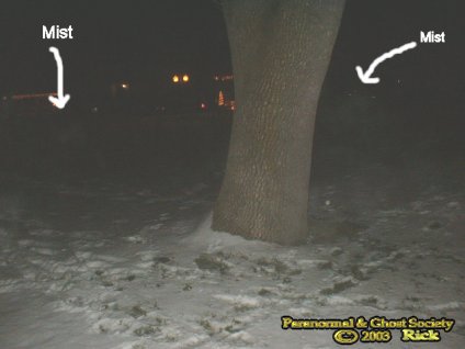 Eventually I put Myndi and James in the van to warm up came back outside and worked pretty hard to try and see if I could capture anything near the monument in the park still nothing except for a mass of ectoplasm about 12 feet away scurrying quickly behind a tree or rather like its trying to stay out of the photo.