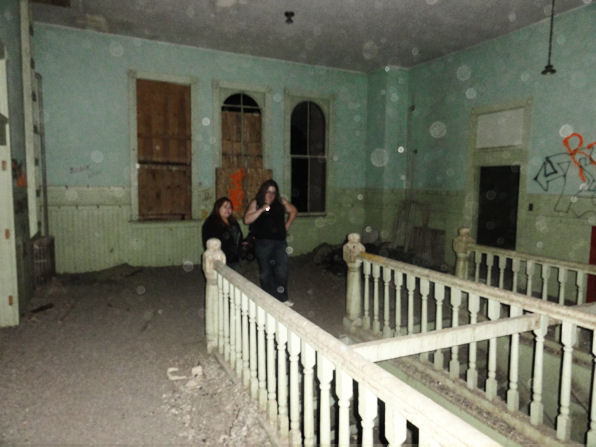 Whether the school is haunted or not it truly is hard to say at night it looks like one of the most intimidated buildings your ever going to confront. However inside it is what it is just an old school house. Unfortunately the building is in deplorable condition overran by rodents and pigeons. Their is also allot of graffiti on the chalk boards, stacks of furniture, holes in the walls, lights hanging by a thread and inches of pigeon droppings upstairs. One of the rooms you can see animal prints in as if someone brought their dog inside to walk around its quite the site.