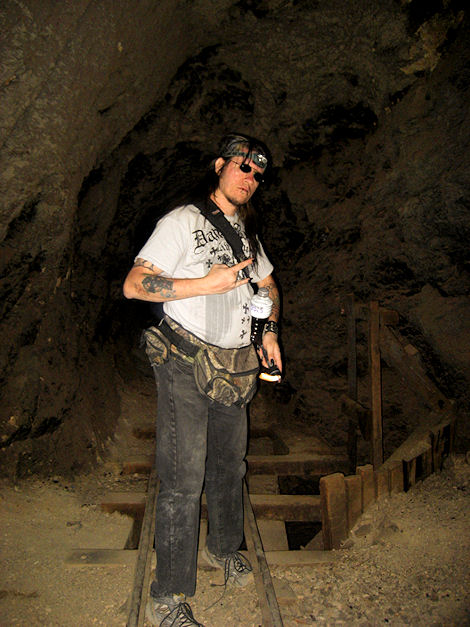 - - Within the Nopah Mountains lays a mine just outside the ghost town of Noonday. Not allot of information is available on the history of this mine but from what I learned it is about 7 levels deep with a couple miles worth of tunnel systems. When we explored the mine during our first trip we visited some foundations, an ore chute and explored one of the earlier tunnel sytems. I thought it was rather an amazing place but considering how much we explored I probably only seen a small part of this large mine which has various entrances that surround its wood ore chute. To proceed deeper into the mine one could explore other tunnels above the main entrance or climb down its ladders to lower levels however a risky move considering how secluded and dangerous this mine can be. Some of the more daring who visit this location use repelling gear and surprisingly some good photos come out of here compared to so many mines. Perhaps this factor has something to do with the fact that some of the old mining gear is still left behind and how this mine was left in its original state when the miners left for good. So many venture up here and spend hours exploring while others like us visit such places for its ghost. At one time gold was mined here not sure why it was shut down but I do know that the last owners of this location was the Anaconda Copper Corporation. The mill is just a few miles away from the War Eagle Mine and is in rather deplorable condition. I heard that the corp is still in business today just not sure why they abandoned this location considering the fact that their still is gold up in these mountains. The War Eagle Mine did operate from 1912 to about 1957 thus this place has been long forgotten about except for those who with to explore and share their adventure with others like we have done for you.. Remember although our group does allot of mines we generally never go where we cannot get out of or put ourselves in risky situations that could lead to a deadly fall. From what I learned is that many of the mines had dozens of deaths and sometimes those miners were never seen nor found. When I seen the giant wood chute from a couple miles away and debris pile I knew that this place might take a few trips to see and unfortunately with the line of work that we do their just isnt enough time to cover the entire intricate series of tunnels laid out within this monolithic wonder. I also learned that some of the lower levels had depths of about 600 feet with vertical slopes and shafts. I actually found a ladder that went deep down to another level and what appeared to be another shaft below. Some who venture here claim they get lost as the deeper you go in the harder it is to find your way around the mine. Thankfully unlike most mines this one has a back entrance and is rumored to connect with another mine in the area that we might look into exploring. Overall its a very bad ass place to explore and full of surprises around every turn. Back a century ago imagine what it was like to be a miner. You lived in a small stone cabin....had to hike sometimes a couple miles on foot only to work in small tight dark spaces for hours on end for very little money. Some of those miners last days were spent in mines just like this one thus I felt that it was a great place to look for any type of paranormal activity. -- -