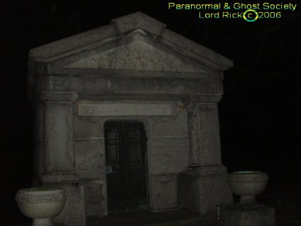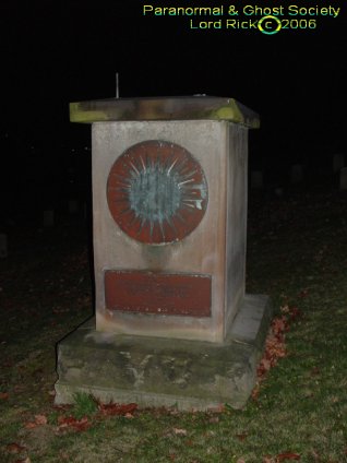 Oakwood Cemetery is one of the largest cemeteries in the Warren PA area. I compare this place to that of Forest Lawn here in Buffalo. The cemetery I believe was erected in 1863 at the same time St Joseph's Cemetery was formed which was erected and has a statue which was dedicated to foreign war soldiers in 1925. When I say large I mean this place makes most cemeteries look like a needle in a haystack. This cemetery is so beautiful as it sits in the mountains and hills. You could probably spend a day just hiking through it looking at various crypts, stones, statues Ect. . Jim use to tell me how he use to explore the basement of the mausoleum which is now filled with dirt trust me photos below prove it lol. But that Mausoleum is the focal point of all energy in the cemetery just a real overwhelming feeling back there. I have now currently visited parts of the cemetery on 4 occasions so I have seen most of it.. However you could probably investigate this place 10 times and still not get to see everything. Imagine how many ghost haunt such a place? Probably 100s of ghost however in just a short time I started to realize that I did not have to wander very far to experience the power of the unseen here because this is a mystical cemetery surrounded by alot of different energies. The cemetery is beautiful if you look at some of the day time photos you can see way off in the distance a mausoleum, a chapel, crypts, statues, rolling hills of stones. Also refer to our St. Josephs Cemetery trip in portal 4 to see some. I thought I seen it all when it comes to burial grounds but truly you have not till you visit here. I seen one crypt with a giant statue on it and another grave that was made into a stairwell and even a stone gazebo that had a husband and wife buried underneath. There is even a veterans area with a monument and man on a horse copper statue. Most beautiful cemeteries are not very haunted perhaps because there is a certain peace or tranquility that surrounds it but this one is different you have so many different types of burials here everything from children to civil war vets. What I basically wanted to do when I visited here is to prove to others that there are ghost here and the cemetery is haunted. If this place were not so far away and I had more time I would probably work with this cemetery at least 10 times and also St. Joseph's cemetery which is connected to it is nearby you can see that investigation we did back in 2003. What makes this cemetery more ironic is that the refinery which is near by is probably the biggest cause of death in the area considering the air that you could breath over years and water drank could cause cancer which leads to death. So the ghost and this cemetery remind us that man is a danger to himself and his creations. Their is alot of graves that were moved to this cemetery from other cemeteries in Warren when the town built up. Copyright By Rick-AngelOfThyNight