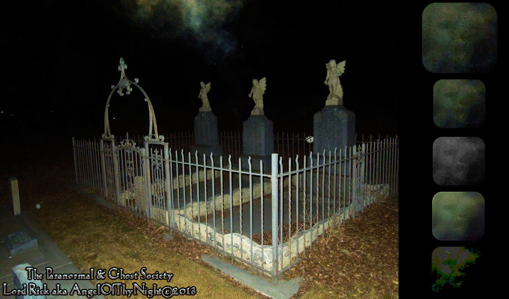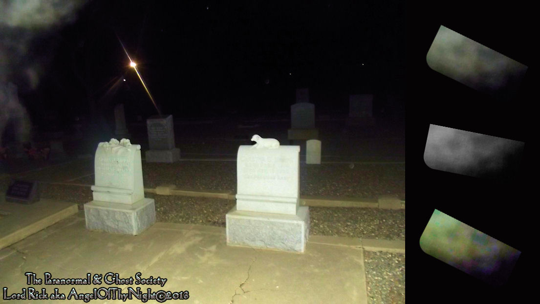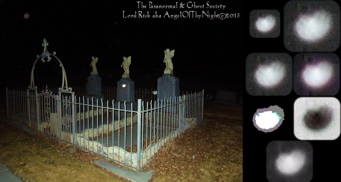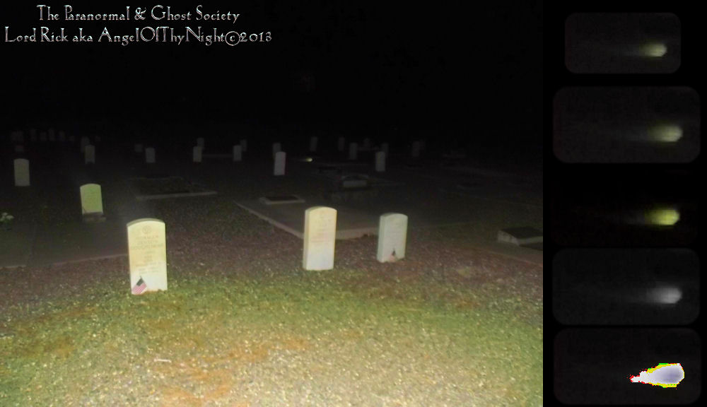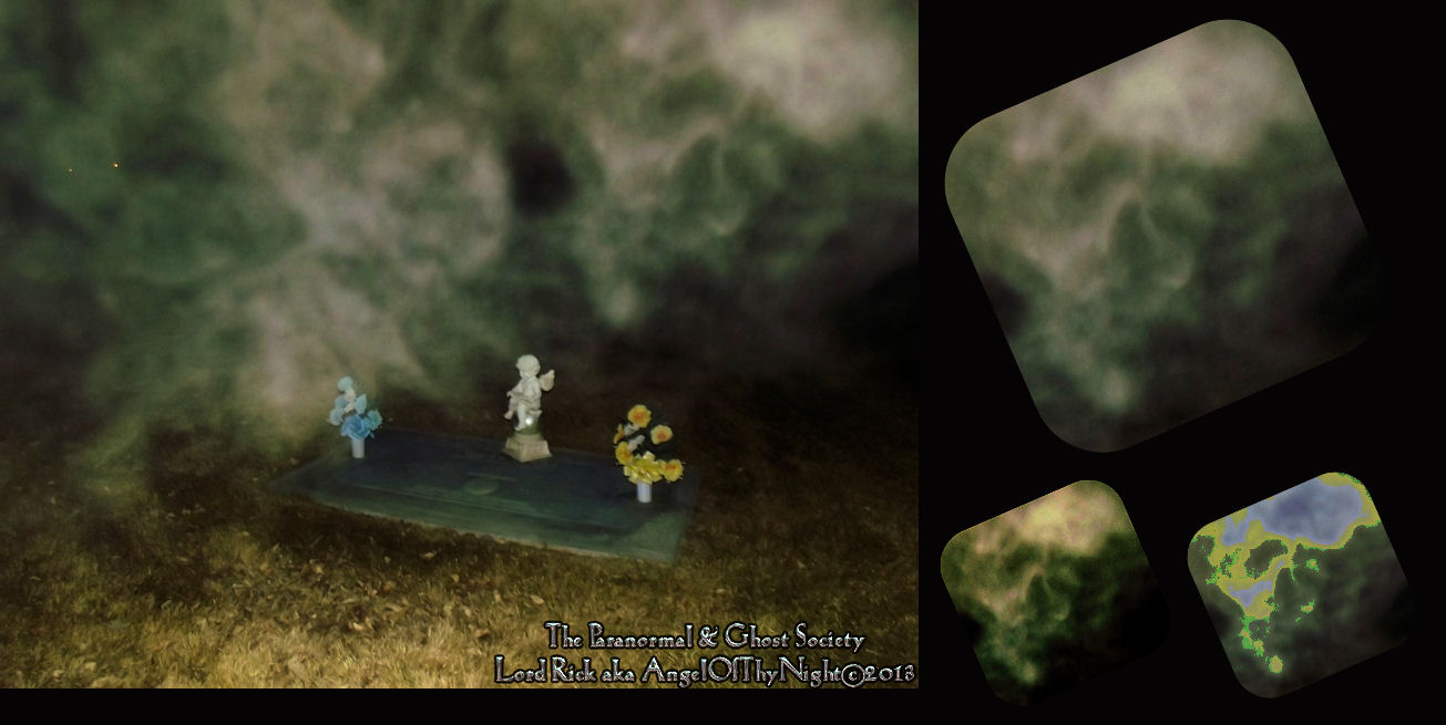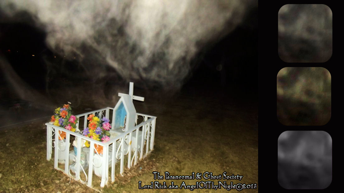 This entity seems to be surrounding the grave of a child. What we have done is cut out the entity then enhanced it so that you can see it for itself. Sometimes you have to sit back a couple feet and stare at the enhancements. But as a parapsychologist our goal is always to capture the best evidence in proving that the afterlife is very real.