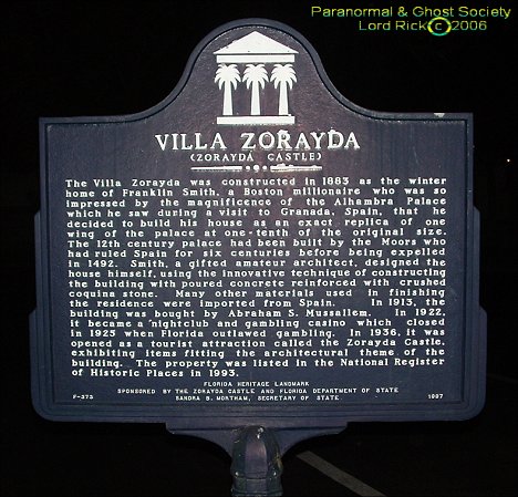 Each window on the castle is a different shape and size and the building for many years was used as a speakeasy and movie set. The reason the castle windows were designed this way was based on an old superstition that if the spirits left they would have a hard time finding their way back. If you want a more in depth history the Moors ruled Spain for about 6 centuries before being expelled in 1492. Smith was an amateur architect and signed the entire house himself. He poured concrete reinforced with crushed coquina stone. Many of the materials used in finishing this castle were imported from Spain. In 1913 the building was bought by Abraham S. Mussallem and in 1922 it became a nightclub and gambling casino which closed by 1925 when FL outlawed all gambling. In 1936 it was opened as a tourist attraction and was called Zorayda castle which exhibited items that fit its architectural theme. In 1993 it was listed in the National Register Of Historic Places. I hear rumors that the castle is haunted maybe by former resident himself I mean despite its castle like look it all boils down to the fact that this is an old house and people lived in it at one time. If you want to see even a greater castle check out Click Here: McFadden's Castle © By Lord Rick-AngelOfThyNight