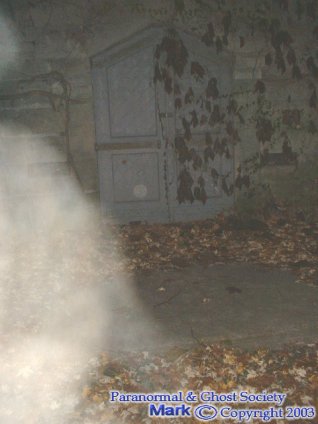 presence. We then hiked up to central hill towards another older section of the cemetery. We arrived at a chapel or what looks like a possible crematorium and there was a male entity who stood in the entrance Mark photographed him multiple times and my batteries just ran out so I was trying to change them in the camera. However in the flash you could see him walking back and forth near the door. I went through 4 batteries in a 5 minute time span so I knew that the entities in this section had some responsibility in draining them.