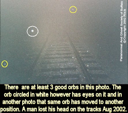 Haunted Depew Tracks Between Transit Road and Ransom Road By AngelOfThyNight In the last few years there have been many suicides along the tracks that run along eerie street, behind the transit in bar, and cross Penora Ave. in Depew. I cannot help think how many people have died on these tracks since in the last year I have known of two incidents that took place. If 2 people died in a year how many have died in the last 100 years. Two occasions something weird has happened along these tracks one time when at St Mary's Cemetery which these tracks run behind it I was hiding behind a tree when something I could not see was standing on the middle of these tracks singing some zoot music. It was singing a old tune the voice was as good as Elvis Presley and it sang for about 10 minutes looking at the tracks there was nobody standing there however when I got to curious the singing ceased that made me profile the fact that maybe 50 years ago a man got killed on them tracks maybe someone coming home from a night club singing I did hear rocks slide like they got hit by a train yet nothing was there. The second experience I had was late night walking by myself I heard the train coming and I love trains so I jogged to the crossing however it just felt odd like something was wrong seconds later the train stopped really hard and came to a halt. There it stood motionless only to read the news and find out that a man that night was laying on the tracks and was beheaded he killed himself out of depression many sources told me it was suicide another source said he was drunk either way do you see the connection drunk or suicide the deaths still keep occurring on these tracks.. Well I decided to go up to the spot where he was killed and I did take some photos. When I went up there I did notice the stains of blood left behind, many flares left over, and although the activity was not high you could sense a sadness in the air. I did however experience some wild cold spots and the photos also do show there is some anomalies appearing on film perhaps to let me know they are there. Walking further up the tracks I found another area with flares and crime tape perhaps another area where someone got killed and that area had a cold spot as well. These tracks are different from others since the vibes I get from them are much higher then other tracks in the region maybe its all the deaths, maybe something is luring people on them at night who walk along them, or maybe its just coincidence. A lady recently was said to be hit by a train and she was just walking home did she try to beat it and fall hit her head? Or did a unknown force push her down? I did bring a psychic up their and she said the spirit moved on in that area. She said he knew what he was doing and was able to move past his death. Although I have visited these tracks many times I mainly only did a thorough investigation of them once that is why we do not have a specific date. But from my conclusion I would say they are terribly haunted and in the next few years I will be monitoring them through some of my other local investigators. Peace, Rick Recently some person which Ill keep anonymous kept telling me to change this report. The report does not violate anybody their is no names specifically mentioned, their is no illegal photos here and their is nothing wrong with it. Some of the research we do is done by ourselves while other research is sent to us but members of our organization. Whether their is truth or not theorizing is not illegal. I know my law I study it and I refuse to put up with some rude emails just because your friend died on these tracks or because you do not like the information that was passed on to me. Nowhere have I said this is exactly what happened they are theories and I cannot be held responsible. I will clear up a few things right now. Threats to sue me will only lead to a counter sue #1 for harassing a scientific institute and inhibiting in our affairs of an investigation. Number 2 if you do not like the material here do not read it. Their is a disclaimer on our main page at www.paranormalghostsociety.org if you did not read it or you are forwarding this page to others without the disclaimer page attached then we cannot be held responsible. By not following our disclaimer you are in violation of the law and you have violated us. We cannot be sued by law or held responsible for any of our investigations or research. If you think your going to get money out of an organization that does not make any then think twice. I am the founder and people looking to blame someone because they lost someone on these tracks is not my fault deal with it you cannot bring back to the past only talk about it. So to those people threatening me if you do not like it do not browse this page enough said because this is how it is and I am not changing it. I will not throw a pity party nor make the acception to go around changing things because some stranger writes me and does not like what they read that is ludicrous and childish. Freedom of press is not illegal nor is scientific research and theories. Over 100 people died on these tracks that is a fact alot of the deaths do not ad up I have ran into a ghost on these tracks therefore these tracks are haunted and deserve to be mentioned to prevent future deaths on them. |
