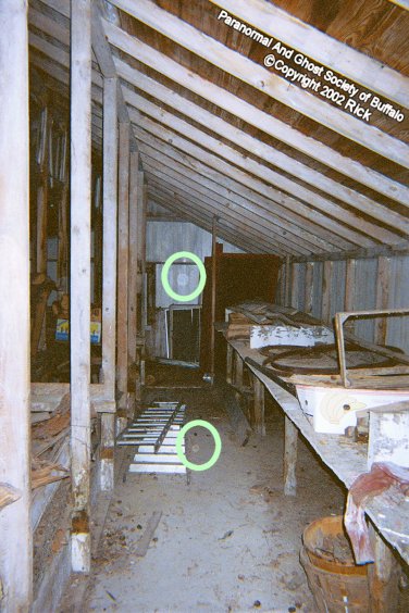 Date: 10/21/02 11:18:08 PM Pacific Daylight Time From: AngelOfThyNight To: ParanormalBuffalo@yahoogroups.com Ok 4 investigations in a matter of a couple days WOW lol that's all i can say. Amy and i tonight went to go check out the abandoned house which i been talking about for about a week. The house is on a very dark road not many homes out there by the looks of the woods, design, basement id say its about 100 years old easily. It is boarded up and i believe a fire tragically struck this home since the second floor and attic windows had some black charring around them. I went to the back of the house and notice a whole view of the basement almost, the second floor half was missing other half was very unstable with an old bed railing, and couch remaining. The property its on has a creek in the yard and the house is almost in the woods very overgrown which makes it all the more eerie. You get the impression that someone has died there you can feel that. I walked down the basement stairwell and came to a empty room in the basement nothing unusual just chestnuts on the floor because of large holes in the roof. We entered into the next section of the basement and our backs were turned and something loud was dragging almost like a human would drag itself along a floor it just didn't sound right and whatever it was seemed to stir up an animal on the second floor it started running. The dragging sound came in the empty room which we were at the doorway of there was no animals in there which leads me to believe that it was something of the paranormal. After the noise it got very cold all around us and very quickly like a freezer my hands were like ice apparently we had awaken whatever resides in this old house. We then exited and walked over to a very old garage still much remains in there a old lawn mower, old wine crate, piles of wood, tools, some furniture as well. The garage was almost like a small barn pretty decent sized. We then departed but leaving we still felt both of us something about this house feels different then all the rest not that its abandoned that ails me its the fact of wanting to know what happened, who or what made them sounds, and what remains to be seen from the photos i took. Rick