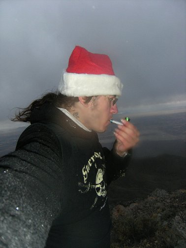 I knew that this trip would not be easy as I had very little clothing, equipment, and was shorthanded. It also is December a very harsh time for the Sheep Mountains with snow storms, cold temperatures, high winds etc. The area is one of the least hiked mountain ranges surrounding Las Vegas. That is why I chose this place. So I made sure I took a lot of photos and video footage for our website and personal friends who wanted to see the expedition from start to finish. I think my expedition will help others out who dare to traverse in this harsh terrain but also give a little incite to others who want to become an explorer to realize the dangers involved. Of course things did not help considering I am suffering from Knee problems so I had to be extra cautious. Little did I know that years ago I would climb to the top of the mountains....snow mountain is just a part of all of this it is not the entire climb I did though. My exploration of the area may be an inspiration to some although my sons are mad at me for doing it and told me I am not allowed to climb anymore mountains. My roommates child looked out the window and seen me actually way up by the peak lol. A lot of planning went into this trip problem is because it is unknown country there is no set trails or way to climb you just have to hope that you are making the right decisions which will save your life but the wrong turn can take your life. You can look at a mountain and say hey its just a giant rock but once you walk up to that giant rock you start to learn of cliffs, canyons, steep ledges and things you thought were not going to stand in the way of your climb. I do a lot of free climbing no ropes, no gear, just my own will power to get where I have to go which is up. Now getting down that is another story probably harder going down then it is up that is lesson one. Lesson two is do your research something I do but don't do with certain places because I love to learn as I go. Lesson three is do not go alone however sometimes I go alone so that others are not put at risk its fine its a choice I chose to take. Of course that is what my site is at www.paranormalghostsociety.org its a way to inform others if they so decide to explore the places we already been to. Its an inspiration to those who are not able to explore the areas we are able to do. I woke up early Sunday....gathered my things...gave all the kids hugs and kisses. I then went to Smiths picked up subs, drinks, snacks, and dark chocolate yummm. I also picked up a back up lighter you just never know. I was pretty anxious kept staring at the summit thinking yep soon I will be at the top. Keep in mind as I sit here and do this report I am in a lot of pain which ill explain later in this report. But I felt others would like to read about my exploration so here it is all in black and white. I drove to the south end of the Sheep Mountain Range nothing but desert....and a public works project which is the proposal for a shooting range, park, dinosaur exhibit area and a few other things. The south side keep in mind is very unknown to hikers and climbers. To get to Gass peak would be easier to hit on the other side but I did not know this so my ascension would start off with a hike in the desert, foothills, mountains and eventually summit and so my journey began here. Sheep Mountain Range/Snow Mountain/Gass Peak I parked my car at the public works project and had to hike in. It was a dismal day....snowing up at MT. Charleston....very cloudy...the sun just did not want to peak through. Which was okay with me because I did not want to overheat. There was an old wagon trail twisting and turning in the desert leading to the foot hills of the sheep mountains. The closer I inched towards the mountains the more obstacles I started to see. On the trail I noticed some Indian burial grounds....I also noticed that the mountains were a lot further away then I thought. So it took me awhile to get into the hills but the closer I hiked in the more interesting the scenic hills became. Like one small hill had a bunch of holes and wind erosion in it. I could tell that this trip would not go in my favor....I had a sharp cactus needle go deep in my foot the first half hour of hiking. I pulled it out and ignored that it occurred. An old guy snuck up on me on his bicycle said good morning to me he was dirt biking on the wagon trail but I knew he would not be rock climbing with me. I had put my Santa hat on so the guy was probably trying to figure out what the hell somebody was doing with a Santa Hat hiking towards the mountains lol. I went around a small mountain and the trail ended. It was time to make my way to the peak. There is no right or wrong way you just climb and climb....and breath. I went into a canyon it was very tight on both ends you start to lose site of the peak once your in a place like this. I have a photo of the narrow passage leading into the mountains its rather spooky looking. See this was not just a mountain it was a mountain range separating Vegas from the Mojave desert and I had to get through various mountains to get to the gold which was the summit. I had no idea what I was getting myself into but nonetheless I kept myself very optimistic. What I thought would be a few hours turned into hours upon hours of rock climbing. When I entered the canyon the first mile was gradual twist and turns. The first wall I climbed was about 10 feet high very smooth almost could not make it up their was nothing to grip onto. Along that canyon and its cliffs I noticed many small holes possible caverns and lots of them. I did not have time to explore any of the holes as my goal was set on getting to the top of the mountains. I felt watched in the canyon for a long time actually I felt the spirits of the native American people almost as if they were trying to warn me to turn back. The silence within the canyons was amazing you could hear a pin drop. As I made my way through them at times I notice
