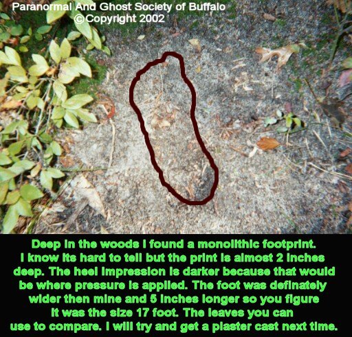 AngelOfThyNight@aol.com All i must say is wow this has got to be one of our best investigations. I would like to thank Dr Vig and his wife, as well as Jim his wife and all the others who were hospitable to Jeff and i arrival up in the pa area to investigate. I really must say it was a fun camping trip to get out of town go hiking, exploring and eat dinner at a campfire ect. I am sure if possible Jeff and i and hopefully i can find others who will go or make it possible to go in the next couple weeks again. Not just because i love it up there but ill leave it at this that there is something up there NO DOUBT at all. The area we went to is the Allegheny forest from what i read it can go for over 100 miles of streams, lake, creeks, rock formations, woods, hills, valleys and mountains with miles of trails ect. The area we went to was Kinzua reservoir just about 10 miles from the damn. From what i notice there is many roads some dirt roads you can take and just park and hike up in the woods pitch a tent and just camp but we found a nice open area where you can see the stars along the woods. Jeff and i set up a perimeter around the campground with fishing line and bells it seemed to work good although later in the evening i found it on the ground in some spots like something pushed it down and we had it fairly high. Our first little car and hike trip was up to the handicap campground its all torn down quite spook i'm sure there is some ghostly activity up there at night i can sense it all around me that's the thing. very creepy little road back there all the cabins being torn down, afterwards we went to an area of river that is driving during this time of year and you can walk across but its soft so we checked for bigfoot prints yeah we seen alot of prints from fishermen ect but one set of prints we did find did stick out. They were EXTREMELY larger then mine 4-6 inches embedded in the ground, barefoot because the toe markings and the span apart each one was over 6 feet and me being 6'2 couldn't product that if you sink in 6 inches to pull each foot out and do that span is impossible even for a guy of my might so those tracks i believe were real. We went back to home base ate some chicken and other treats then we headed out to an area off the road which is Indian burial ground going back in the woods at night was my first experience in awhile and we found the area of the vortex although not seeing nothing it didn't feel right there and our walking talkies did lose connection on 3 occasions where it was dead even standing 10 feet away pretty eerie to think about maybe entering into a alternate reality. We did head back and when we were about ready about 3-5 miles away i heard screams maybe human but they were long and had to be loud because of the echo we received back there was about 5 of them a few seconds apart. We managed to get back and find an area which may have been possibly haunted just something circling around us you could hear the movement. we got to the road and went a couple miles up it to a place with huge rock formations, a very foreboding stairwell near the look out of the lake, mountain and full moon. We found possible cave entrances in the rocks making our way up we found a huge rock high up and sat on it and all of sudden hear a whew sound over and over coming from the canyon below then next ya know the fog over the lake consumed us in 3 minutes tops we rushed through the forest but it got thicker an thicker and of course we got into the car and left to go to another site. We ended up going near a site where there is some locked up cave or missile silo and near an area where there is a nessie like lake monster being reported or seen you can hear the rushing water and its fairly quiet and of course behold getting out of our vehicle we hear a scream very high pitch very long like a baby but it wasn't it was something with a very big chest to make a sound like this and it was pretty close and there was a smell in the area i cannot explain like we were being watched after awhile we left the area got back to camp and i was told before hand that this area has many other strange things alot of ufos in the lake, above the lake, in the sky, you got many other strange happenings to like men who will go off hunting get lost in a pink fog or where things aren't what they seem and you get lost. I was also told that many other creatures have been seen a black doe, a panther possibly, now coyotes, and of course from what i am hearing from drvig is that there is something else besides bigfoot and although it seems terrifying i want to find this thing. Its suppose to be fast, walks on 2 legs and one night i guess it tore a deer apart limb from limb and supposingly is nothing human but something much worst then bigfoot up in them woods and i guess makes a whew bird like sound which we did hear on occasion so maybe that was it? But maybe it comes from the vortex or maybe the strange men who tell you to get out of there know something we do not. Anyhow later after warming up by the campfire we went to a place called jakes rock very interesting large boulders 12 feet up you can climb and lay on in the woods we went to the overlook walked around got back to the road and distinctly i heard a ROAR something like you would hear in my bigfoot wav recorded by other scientist in Cali. It was long loud and i could not duplicate then the fog rolled in down this road we hunt out and and then movement all around us then the fog left and the movement was gone. We went back up to camp again and of course everybody went to sleep i ended up throwing a banana and some chicken 100 feet out past the perimeter i heard something moving around and believe me it was big alot of loud snapping of bark, trees ect it seemed to startle when i ran with my flashlight towards the area i heard sounds or facing that way like it did not want to be seen. i know the creature is hungry i mean i don't sense harm from it but its cur