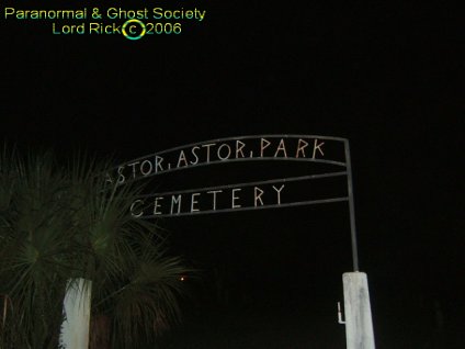 The Astor Cemetery was established in 1885 when William B. Astor donated the land for it. The newer section has a stone that says Patsy Tatum donated the land for the cemetery so perhaps there are some discrepancies here. Some of the oldest stones date back to the 1800s and Astor is even buried here. The oldest gravestone is that of HB Sanders who died in 1886. Rumors of a house being within the cemetery I have also read about at one time. Astor was a steam boat town with alot of history so many of the earliest pioneers led a life here and were buried in this cemetery. The cemetery has an old wagon road that runs threw it and a wrought iron entrance deeper on in. It seems recently they have expanded it building around the oldest section for newer burials. Its not a bad little cemetery a bar is across the street so it does get a little noisy here which makes it hard to investigate. © By Rick-LordOfThyNight