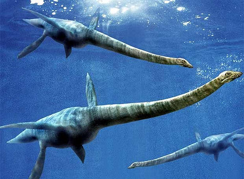 Also, for all their fish-like characteristics, ichthyosaurs possessed lungs, not gills--and therefore had to surface on a regular basis for gulps of air. It's easy to imagine schools of, say, Excalibosaurus