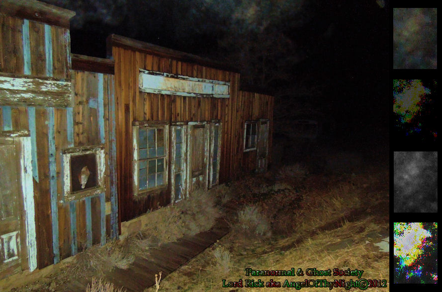 In the background you could hear a dog barking dogs are very popular in Virginia City everyone has them so its not uncommon. I did finish off the night taking video footage of the hearse Tammy then took the camera to finish off the video so I could free my hand and talk. I felt very cold around the slums and I knew it was time for a beer. As we were about to call it a night I did capture a couple photos of ghost Tammy examined it and she says the apparition does look Chinese. We do believe based on our finds that the slums are haunted which seemed less of a case with Sugarloaf but then again at night sometimes things are a little more active.