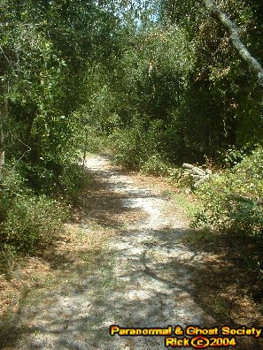vibrations from the land. In 1982 some scientist wanted to know the secret behind the Cassadaga Psychics. They tested two mediums to learn if their brain waves during a trance differed from normal non-trance brain activity In 1992 Cassadaga was recognized as a historical site. Then in 1994 the Centennial of the community was celebrated. But what is more interesting is that satellite photos show a strange aura surrounding this town. Around that time the first murder that ever took place here occurred. Sad to say it would not be the last since in 2003 a man killed a young boy and his grandmother. The man scattered the remains of the boy and even though they found his bones they never did find his head. The grandmother has yet to be found. Some at the time seen this man back in the woods of the Lake Colby area they believe that at that time is when he was dumping the remains and hiding them. Residents of Cassadaga have tried to help police find the remains. So sad to say the woods near Colby lake have been tainted by such a hideous crime. Also recently my friend Melissa told me a story which happened near the woods of Colby lake. A friend of hers who owns a ranch type of home has a few dogs. The entire property is surrounded by a fence. Well she said that he went to spend the night else where and the next day came home to find his dog missing chunks out of its body. The dog was mutilated particularly around the neck area. He called the game warden out and they told me that the bite marks do not match any animal in those woods or in the state of Florida. The bite marks the dog suffered were very large and whatever it was had enough power to take large chunks out of the dog. The dogs he owned I believe were Rottwielers Etc so it was a big dog. To this day he cannot figure out what climbed the fence and killed his dog. Our organization believes at this point it is some kind of Cryptid. Volusia country back in the early 1990s had purchased at least 100 acres of land surrounding Colby lake so most of the area back there is very secluded lots of woods and many Native American type of trails some of them which we hiked on. So anything can hide up in these woods Florida Skunk Ape and what I believe is the Chupacabras a species which attacks cows, goats, and dogs usually drinking its blood. But its jaws are very large so large bite marks are a possibility. My friend also told me her sister in law at night hears chanting and various rituals that take place out in the woods. Some say there is a ley line here and where there are ley lines there sometimes are portals or vortexes and sometimes things can slip into our dimension which perhaps does not belong here. On our second investigation a creature which sounded prehistoric and very large. The creature followed us through the woods all the way to the ruins and circled around us. Eventually it started to close in and vanished. But whatever it is the dogs in the vicinity of some cottages can sense it and there seems to be more then one. Its a very intelligent creature perhaps is bipedal, about our height and seems to move fast at times perhaps like it can leap as we heard it in some of the trees and walking around. But the fact remains that quite a few have seen strange creatures near these woods and even the founder of Cassadaga mentioned something unknown or alien like following him in these woods. But this is a creature that can communicate, its fast, it can go right through brush without a problem, and obviously to approach two of us holding swords then vanish it obviously is very intelligent. According to Lee it seems to be an ambush type of creature where it follows you and corners you. When I set off hiking in the woods of Colby Park I had wondered to myself what ever happened to the Colby Residence? Well honestly as I thought it does still exist. But it sits hidden by under brush, vines, trees. What is left of it is a stone fire place, shed, log cabin, garage, pillars, wood beams, stone stairwell and a stone foundation. We were so fascinated by our finds because this seems to me to be the most haunted and active area of Cassadaga. There is many mixed feelings back in the park and trails feelings of being watched, moans, cold spots, branches breaking etc. Perhaps once the sun goes down this is not such a serene place after all. But today its a make out spot for lovers I would assume. But since our first investigation in the woods and around the park the trails have been widened and alot of brush has been cleaned up. There is roughly 14 different sites that are here. One of them is where a hotel once stood hidden in the woods we still have yet to find the foundation. Then there is a bamboo tree which grows out of a small creek in the woods. There is a a carriage barn, well, and also some springs. So there is alot to see however some trails are unmarked which probably have some secrets of there own. Now lets talk a little bit about Cassadaga today. If you were to approach the front gates to enter the town what you would see is many small cottages and a few giant houses which also sit in various parts outside of the town. There is an eerie feeling here as most locals just watch you. You see kids toys all over but you never see any kids. The town has over 100 psychics, mediums, astrologers, and palm readers. How accurate they are well lets put it this way 5 out of 5 people I have talked to said they were 100 percent accurate in there readings. Many of the dirt roads in Cassadaga are very narrow and cross down many rolling hills which the cottages sit right on. Near by one can enjoy a stroll to Colby Lake or sit at the prayer garden. Some attend church at the Colby Temple while others attend meditations. As a very small southern town this one is very quiet there is no laugher or horse play in the streets. Past a certain time at night nobody is outside not even on there porches. There are no stores, gas stations or anything even like that. Its a very o