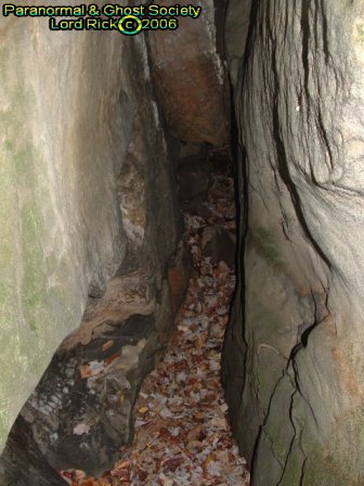 In the earlier 1900's this area was inhabited by a family or gang of counterfeiters. The family said to be involved was from Ohio printing fake money. Eventually the Department of Revenue Services found this out and raided the out cropping in the cliff side. During this raid one person was shot and killed in the gun fight. There is also a rock that extends on out which has carved in it the name of the family. They say the leader of the gang was maw but that to me sounds more like maw barker here in FL so I am not so sure if she was the actual leader in charge. Good chance that quite a few were involved in this back then but they were caught eventually after the gun fight. I also heard rumors of another cavern in the area wish I had more time to look around its a weird place very secluded to. The only way really to get into the Den is to repel on into it and trust me if you fall you could die its a very large and high cliff. To get to the cliff alone you have to hike threw thorn brush and its a hidden area. There are no signs to get here or parking areas. Its one of these places you park, cross some old unused tracks, hike in the woods with no trail and come right out looking over a cliff. I did climb a part of the cliff in a less steeper area and I did enter a den maybe not the same one or maybe it was. But like I said it was steep and there were drop offs. There are some pretty deep crevices to and today its a well known spot for visitors to try and hunt down those Counterfeiter press plates which are still said to be hidden here. © By Lord Rick |