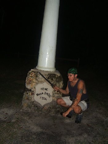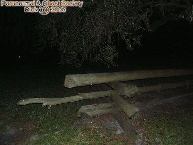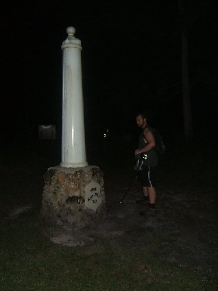 In the early 1830s the US told the Seminoles that they had to move to a reservation in Oklahoma which most of them did without a problem. The ones that stayed behind signed a treaty stating that they would move if they were given a year to make preparations. These Seminoles were very powerful composed of chiefs and many warriors. They had no intentions on leaving they just were buying time to gather up enough Seminoles to fight for their lands and for the Seminole People. In December 1835 Major Francis L. Dade and his 108 troops left Fort Brooke (Present day Tampa Bay) to help with the reinforcement of Fort King (Present Day Ocala). The trip was roughly 100 miles so the men started their march before Christmas which means they left around December 23rd 2005. The men more then halfway their marched for 5 days in peace they did not see any Seminole Indians so no flankers were set off by Dade cause the military road was quiet during their march northward. The Seminoles were aware of this army that was cold, tired and marching on the military road. They were watching for roughly 5 days quietly hiding in the scrub pines and palmettos they were waiting for the right moment. If anybody has been to the Florida woods some areas are very similar to a jungle like fauna so truthfully anybody or anything can hide in the woods without being seen. Since the Seminoles were experts in the woods they were able to camouflage themselves well. On the morning of December 28th 1835 Major Dade said "Have a good heart; our difficulties and dangers are over now, and as soon as we arrive at Fort King you'll have three days to rest and keep Christmas Gaily" to his men to encourage them. Little did he know that only 8 hours later those would be his last spoken words. The 108 men were pass through a high hammock of oaks, pines, cabbage palms and saw palmetto when they heard a shot. They were not able to get to their ammunition boxes because their over coats covered them due to it being a cold day. All of sudden they were in the middle of an ambush. At least half of the men were either killed or wounded one of those men was Dade. The Indians then retreated which gave some of the men a chance to construct a breastwork of pine logs to be used as a small fortification. Then moments later a second onslaught took place the pine breastwork was only knee high and was not completed by the men. At that point in time nearly all the soldiers were dead. Two men John Thomas and Joseph Sprague escaped and made it back to Tampa while the fighting was occurring. After everybody was thought to be dead the Seminoles left the area. Two more men named Ransom Clark and Edward Decourcey pretended to be dead on the battlefield. Both men also headed back towards Tampa with Luis Pacheco a black guide. On the way Decourcey was killed by the Indian. So in total only 3 soldiers lived to tell the tale and only 3 Seminoles were killed out of 400 to 1000 Indians speculated by the survivors. Chief Alligator known as Hallpatter stated their were only 180 braves some slaves some warriors of the Seminole Nation. Also responsible for the massacre was Chief Mico Onapa known as Micanopy and Chief Jumper. I am pretty sure the Seminoles let a couple men escape purposely to warn the US that the Seminoles would not go down without a fight. This massacre caused wraith within the US government and the Second Seminole war had begun. Seven weeks later the bodies from the massacre were finally found rotten and unburied. It took the men 7 weeks to arrive here cause they had to gather a new army. The men were buried on the battlefield temporarily till the bodies were moved in 1842 to a National Cemetery in St. Augustine where today three stone pyramids resides over a mass grave. It really is a sad place when you think about it. I mean these men did not even get to celebrate Christmas let alone even have a chance to fight back. Most were shot and killed instantly. The Indians were able to kill the men and quickly disappear into the terrain which was favorable to them but not proper military warfare for the US soldiers. When war was declared on the Seminoles their were at least 40,000 Seminoles that were able to elude capture and because of this that war lasted around 7 years. In 1905 a Congressman named Stephen Sparkman asked for copies of files related to the Dade Massacre to be sent to him. He proposed a bill to save the site but it was not passed. Then later on Senator Duncan Fletcher continued to gather more documents with the encouragement of Superintendent of West point named General Douglas MacArthur. By 1921 the state legislature funded the preservation of the battle site to be used as a memorial. The arch made out of stone and wood was built in 1922 at the entrance to this 80 acre area. Today if you were to visit you would see a part of the Fort King Military road still preserved or at least a section of it. Another section of it lies near Fort Cooper where we also investigated. Along the military road are a few memorials of the men who had fallen here. Their is a replica of the pine breastwork or rather log barricade that soldiers used in their defense. The lodge which was built in 1955 was named Tustenuggee meaning war chief. Their is also a reenactment battle mound, meeting hall, picnic shelters, a playground and hiking trail. The area was preserved to look very old as their are stone bridges in various parts of the battlefield. Their is even a giant oak tree near the battlefield which is supposed to be one of the largest on the gulf coast of Florida. The battlefield was placed on the National Register Of Historic Places in 1972. Every year on December 28th the battle is reenacted or should we say the massacre. Although this massacre had happened here today the place is rather peaceful but its also quite haunted and of course like most places you see on our site we are the first group to do an investigation here. I mean putting yourself in the soldiers sh