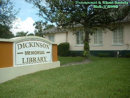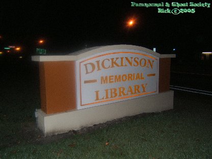 site had moved to Port Orange. If you were to visit the library today it looks like a house with its tile roofing rather then a memorial library. The park has a giant stone fountain in the middle, an old historical bell probably left over from when a school was here, some benches and walkways. Whether the area is haunted or not it seems their is some sort of residual energy to the area perhaps because of the school, fires which took place, or that at one time the library was a house where others had lived. Dickinson was a prominent man to the Orange City area and now we bring you a story of library ghost and history. © By Rick-AngelOfThyNight