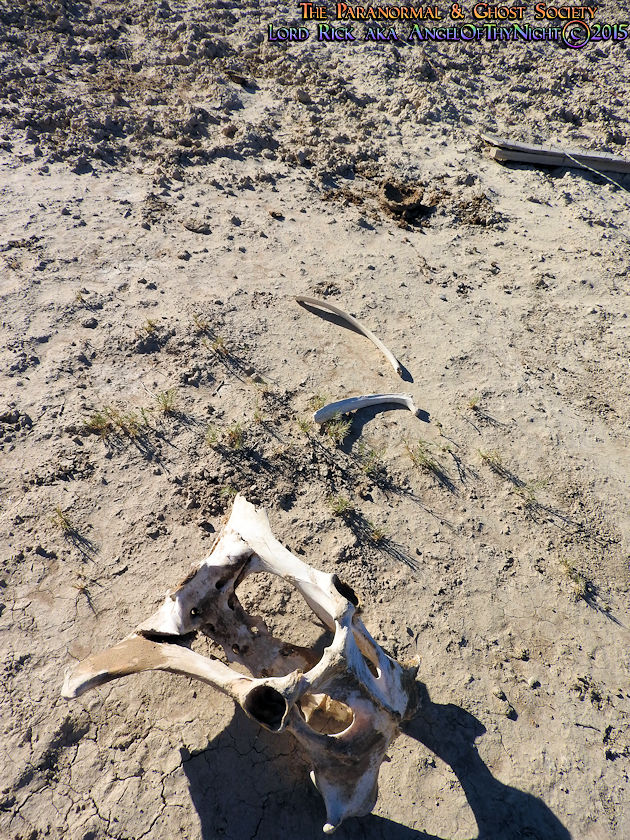 During my journey I came across quite a few bones some from cattle others from wild mustangs. The valley had faced extreme drought for many years however it also tends to draw in allot of wildlife because every ranch site has at least one natural spring with fresh water constantly flowing to the surface. Therefore, wild horses and cattle on the range may decide to cross this expanse in search of water but at a price. Their are many lush canyons surrounding the valley that predators live such as Coyotes and Mountain Lions even at one time Wolves which are not unheard of but rare. On my first trek to the valley I seen dozens of bones it did not matter where I hiked at or what I explored the entire valley floor is riddled with animal carcasses. Whether predators are the cause of death, little green men or just natural deaths it is realistic to say that all three may have played a factor. I posted a few photos so others could see some of the bones we found on our trek. Its a dismal warning that this valley holds very little back and if such large mammals such as wild horses could be brought down then this just means that humans could also succumb its salt marsh and alkali flats.