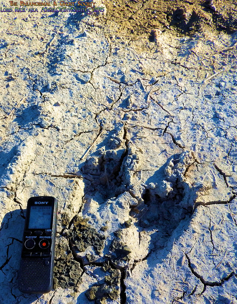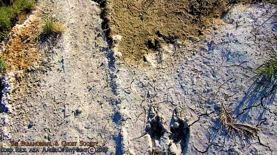 At one of the ranch sites we found hundreds of skeletal remains of mustangs and cattle. This would make sense since this ranch has an active flowing spring which flooded the ranch lands so it was a bit muddy and marshy at this site. The fact remains is that predators may come down from the mountains to drink from the springs and might end up stopping in for also a late night snack hence the bone yard. Among the marshy land near a dry patch of ranch road we found these tracks and I honestly cant say I know what made them. As a matter in fact throughout the exploration of Dixie Valley I seen similar tracks such as these on more then one occasion. I really was so focused on my research that I simply did not pay much mind to them till upon further study what stood out as strange is that whatever made this had three toes its more prevalent with the top set of tracks. It is possible that a rabbit made the track since they often keep their feet close together then again it may have been a very large lizard. During my journeys in Northern Nevada I have seen some very large lizards of course this one would have been a couple feet in length. I seen some larger three toed impressions while hiking around and made some jokes that maybe a raptor made them. Its hard to always know for sure what comes down off the mountains Nevada has its fair share of aliens, ghosts, mountain lions, giants and even Bigfoot believe it or not. Therefore anytime I hike in this rugged frontier I cant always place every single track we come across. I can only speculate as to what it might be or how it was created. I found it odd to see three toed tracks of various sized on our expedition among the bones scattered across the desert floor. A friend of mine told me that his buddy was hiking up here when he came across an entire pack of mountain lions hunting together. This is strange and not hardly the behavior of these predators but with food being more scarce predatory behaviors may be changing as life here for such mammals becomes more extreme with global warming on the increase.