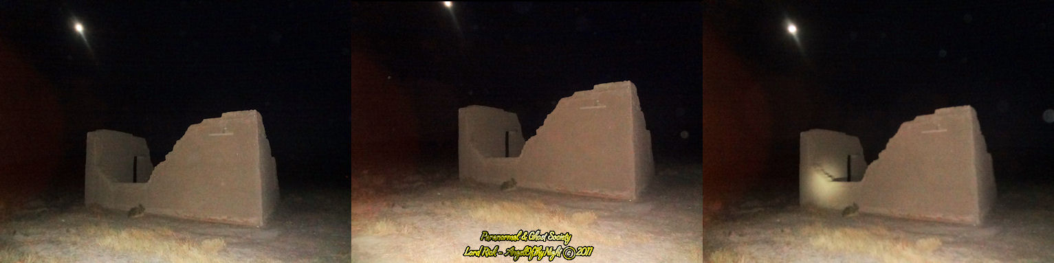 Three photos taken a second apart show some energy moving on in and by the third photo it is behind one of the structures of the fort. This is a hard decision to make if it is paranormal however as a scientist of the unknown we post all our finds and let the public draw there own conclusions:).