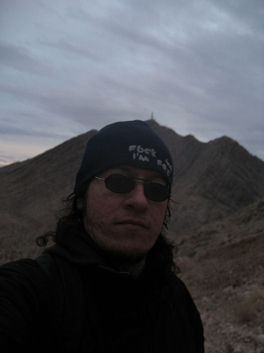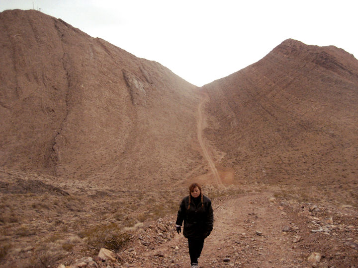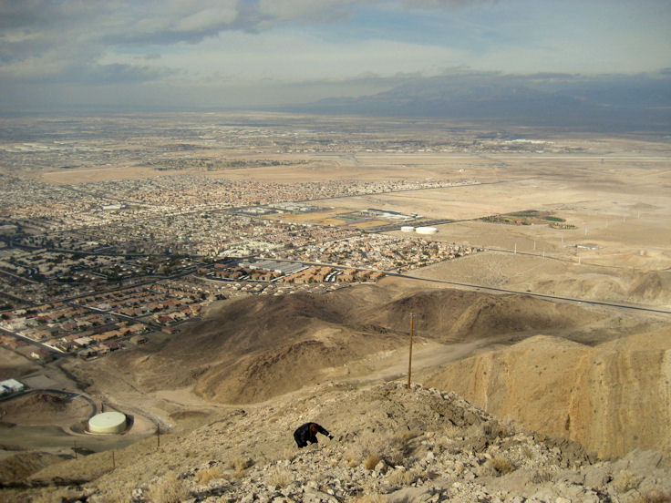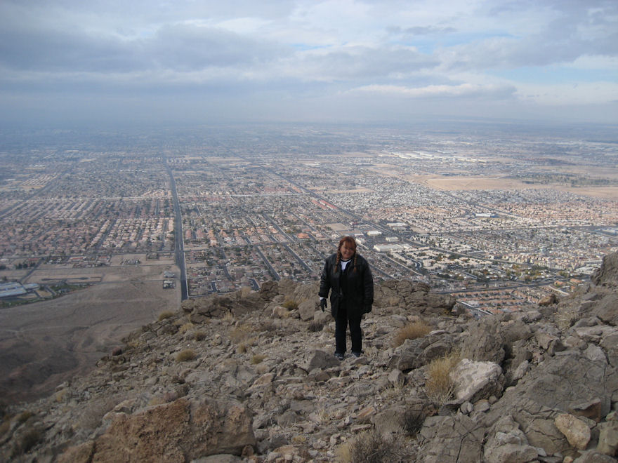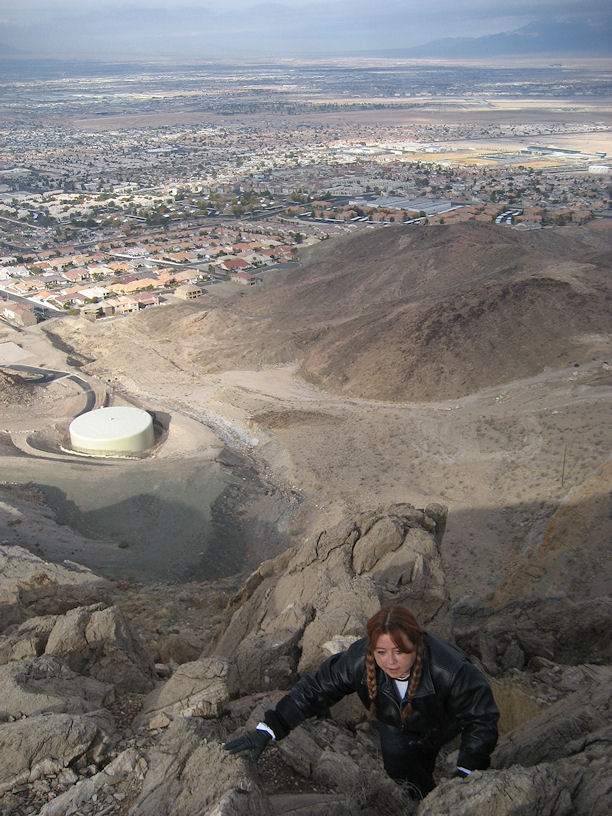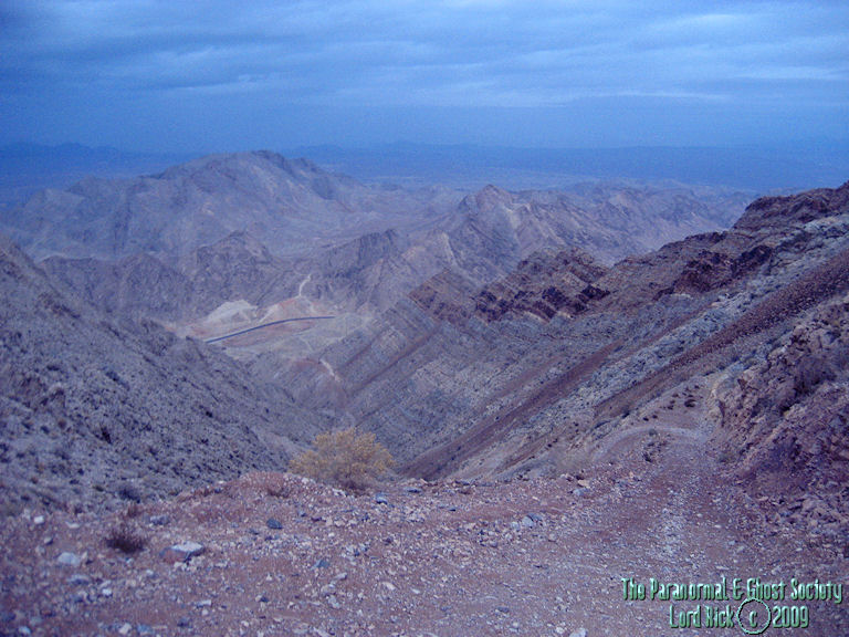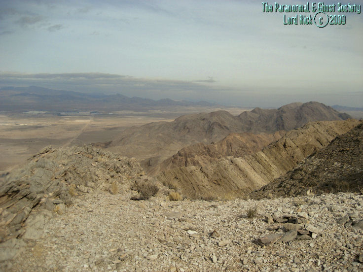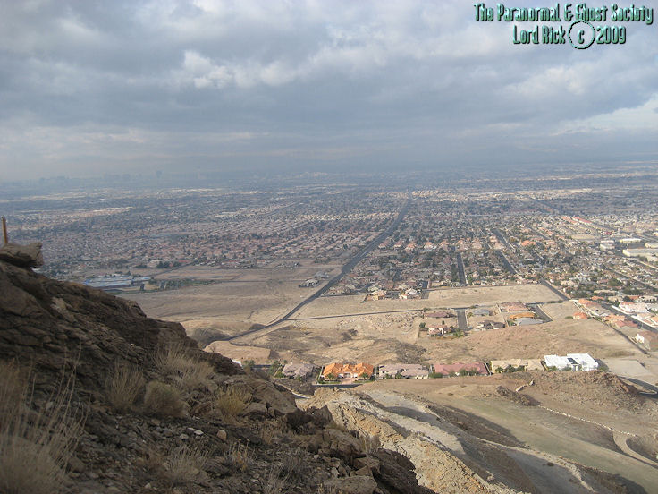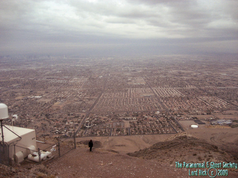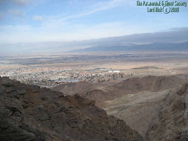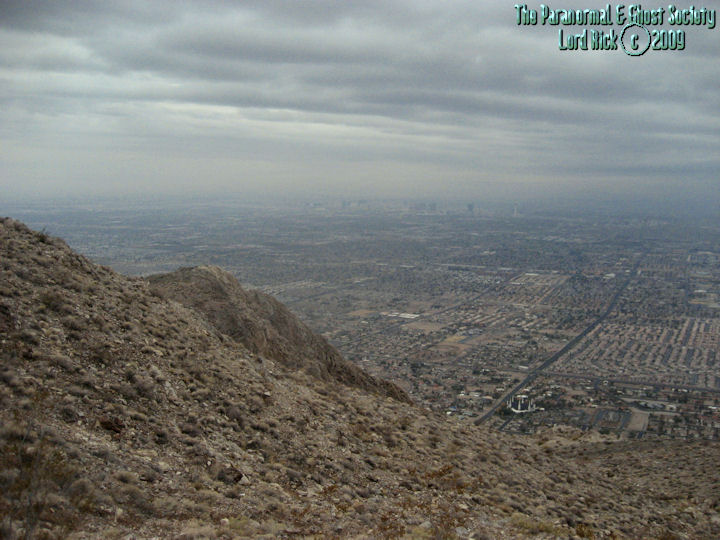 Over my on and off years in southern NV I have always thought about what it would be like to stand on top of these mountain peaks which grace the east side of Las Vegas. What most residents in Las Vegas call Sunrise Mountain is actually Frenchman Peak. However Sunrise Peak is north and part of this mountain range as well divided by Lake Mead. This investigation is a perfect example of setting your eyes out on something and actually doing it. You see I actually for a short time resided near this mountain range. So someday's I would stare out my window daydreaming of what it would be like to look down instead of up. My life at that time reached a low bottom.....I was living in a very crime stricken area of town......medical issues....very few friends.....low finances.....divorce court with my ex....etc On Halloween of 2009 I met Tammy and since then my life has changed on so many positive levels. After about a week of us spending time together I took her up here at the base of the mountains. I wanted to show her some of the locations we explore.....take some photos....walk around holding hands showing her what it is that I do etc. I felt bad because after our nature walk Tammy ruined her imported leather boots. I guess that It had been so long since I did some real hiking that I forgot how rugged the terrain can be. Little did I know that just over a month after that I would be telling her I Love You at the top of the Frenchman Mountains overlooking all of Las Vegas. So perhaps this is what makes it such a special place because not only was it one of the top geological sites in the world full of beauty but also that a part of myself I left on that mountain. Over the years seismologist have kept their eye out on this range because it contains fault lines that at anytime could cause an earthquake in the Las Vegas area. I was not going to mention earthquakes on this prologue till I learned that their is only two locations like the Frenchman Range in the world this being one of them. I have always felt that if Las Vegas had a major earthquake the effects would be devistating as with the questioning goes to all of Las Vegas are you prepared? The reality is that the fault lines run through this entire mountain range with Vegas in its reach. As you have noticed in 2010 the entire world is experience tremors...earthquakes....and even some record seismic activity. Las Vegas over the years has had some mild tremors hardly noticeable unless you were in some of the taller high rises with a little age which were not earthquake proof. It is inevitable that one day whether its tomorrow or a century from now that Las Vegas will get hit with a major earthquake and more then likely the main factor that will contribute to it would be this mountain range I once stood upon as if time stood still. Now before you go off and panic you should know that a quake in Las Vegas of a 7.0 magnitude usually occurs every 1 to 10 thousand years. Some of you might live to see this mass destruction of mother nature and some of you such as myself will leave this place and let mother nature have its way just with any location across the world. I can only imagine if a natural disaster occurred in Vegas their would be mayhem in the streets, looters, shootings, rapes, robberies etc and that is a sad factor considering how large and high the population is that nobody here is safe. Back in 2008 if you remember I did a place called Click Here: Sloth Canyon which is just a few canyons that actually run on the backside of Sunrise Mountain. Their is also the worlds largest gypsum cave where giant sloth bones were discovered and now are in a museum. From Frenchman Peak one could see Lake Mead, Valleys, Basin and all of Las Vegas almost. The view is rather breathtaking considering its at 4,000 feet which is 4 times almost as tall as the stratosphere tower in downtown Las Vegas. Although its not the tallest lookout point of Vegas......it is is within the top 6. At one time Sunrise Mountain was a lovers lookout point and still is. Many lovers hike up here or park on Lake Mead just to kiss and make out adoring the night lights of Las Vegas. The mountain range was named after a miner named Paul Watelet in the early 1900's who was Belgian however the locals thought he was french thus calling these mountains Frenchman Range. Their are still signs of some mining from way back in the day such as old mining roads.......little caves....holes....wood boards and even a part of the old strip mine which was heavily vandalized with graffiti. I have found other things in the range such as a burial ground and cobble stone wall which are remants of history. What made this exploration more extensive is that we took the old mining road at the bottom of the mountain then climbed straight up the side till we reached the rugged trail/road leading to its peak. Due to this factor the exploration was rather dangerous as we edged cliffs......climbed through canyons.....steep grades.....and high heights for many hours. We actually took the wrong road on in so we had no trails to follow we just had to keep climbing and trying to make it to our main goal which is the tallest peak in the French Mountains. Going back we took a rugged trail which followed this ranges ridges. I did not think about the paranormal even the slightest but felt very watched as dusk rolled in. Their is a unconformity within this range let me explain. The rocks that are 1.7 billion years old are found layered next to rocks that are only 520 million years old. The rocks on the right side of this historical site are Precambrian granite and schist. They were formed deep within the earth in the core of an ancient range of mountains. When millions of years had passed the old ancient mountain range eroded away which left the rocks exposed dating back to 500 million years. Those same rocks then were buried by sand and this mountain was covered by a shallow sea. I know the mountain was underwater due to