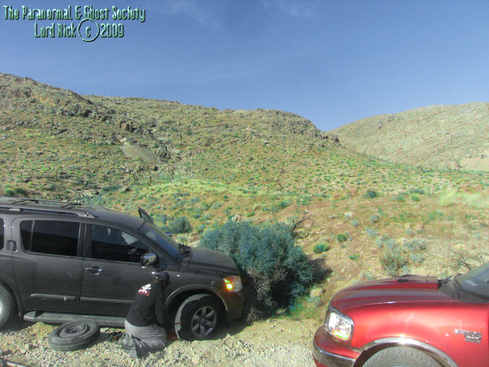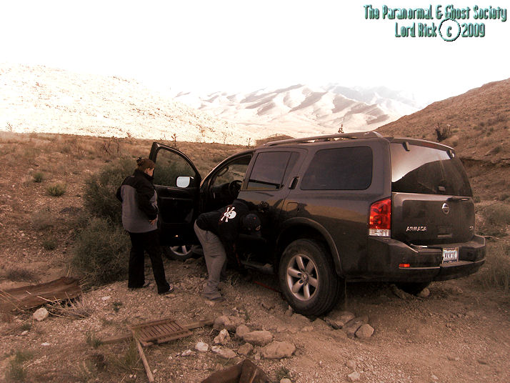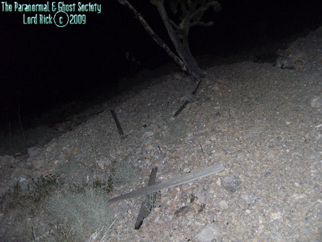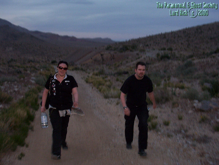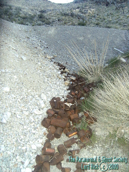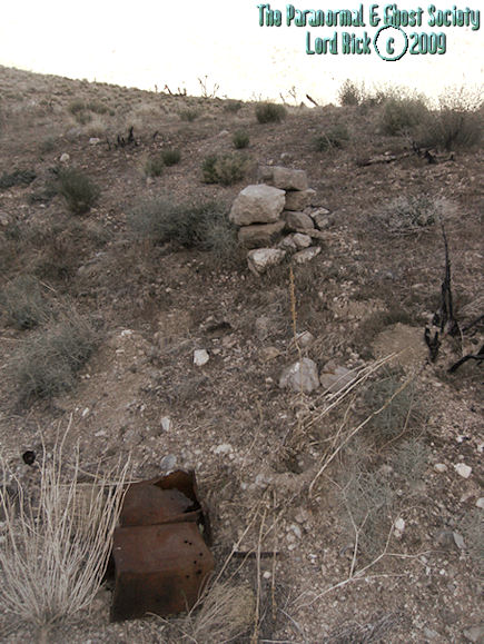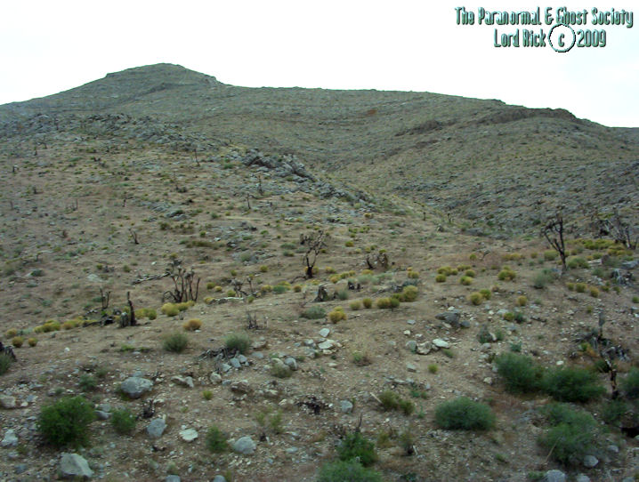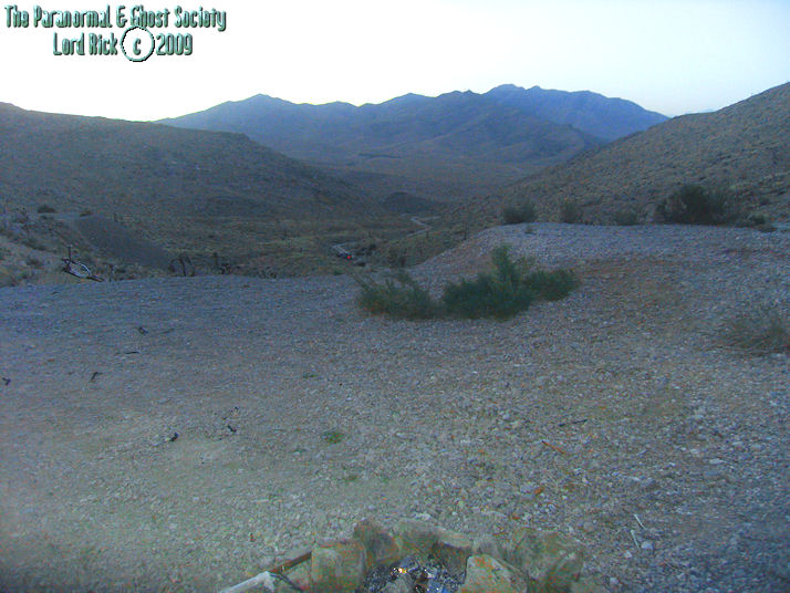 I made a special section for the mining district because during our hike we encountered so many mines but this district was more like a camp just outside of the main semi ghost town of Goodsprings. At one time they had a railroad that led back into town where minerals could be processed at the mill then exported. The entire mining district in my opinion is A. Creepy B. Full Of Paranormal Activity C. Mines & Foundations. Along the hike about 5 miles beyond the town is a series of dirt roads some lead to mines while others are just vast wildnerness and canyons. More interesting then so is the fact that I spent a good amount of time noticing a very notable landmark known as Mt. Potosi the same mountain where a TWA flight carrying Carole Lombard had crashed killing this celebrity. The mining district still shows signs that at one time stone cabins were built in the canyon and the old train tracks had been removed but the path where it ran still remains. Most of the mines are fairly small but one mine is sealed with iron perhaps this was the keystone mine which caused the town of Goodsprings at one time to boom drastically. Often adventurers will take their gear out here and camp. I seen it done as I watched from a ridge two sets of cars slowly taking the old mining road. Many types of minerals were mined here gold, silver, zinc, lead, ore, cobolt, platinum and copper. The minerals were so rich here that the population in 1915 was higher then Las Vegas reacing over a 1000 residents to this area. The mining district is in a scenic location surrounded by many mountains of course being shadowed by Mt. Petosi which is a very ancient site and place of various lead mines that sparked Vegas growth. You would expect the mines in this district to be older then what it seems but many of them were mined in the earlier 1900s unlike the much older Yellow Pine Mining District which sits fairly close to the town of Goodsprings. Here is what I can tell you about this mining district based on my experiences and what I seen. Their is a few shafts in the area that are holes leading to places our team could not get to. However for the most part we covered many mines and tunnels within the canyon. Across the valley you could see possibly another mine off in the distance. Their is so much to see and explore here. As far as paranormal experiences here the activity is heightened not sure as to why just yet. I am almost bold enough to say that I had what I believe might be some alien activity within this location. There is something that seems to follow you around often it looks like a dark shadow others reported seeing something that looks like an angel or alien like being. One both investigations individuals who volunteered for us described this. Their is an odd mist that moves fast within the district....female screams are heard probably ghostly.....black shadows move around often....and there are strange balls of lights that travel sometimes certain patterns like UFOs perhaps smaller ones. I believe I was lucky enough to capture one during my visit to the burnt down Yellow Pine Mill which radiated various colors of light. Speaking of UFOs at one point I was paralyzed in the Copper Mine almost which runs under the same hill Karrie scene this being standing on in investigation 1 of the area. I can only speculate all of these occurrences to be paranormal phenomena of some kind. I cannot say they are ghostly, alien or demonic I can just tell you based on collaborations from team members and myself. Please refer to our Goodsprings history read up to understand the connection of the district to the town. The district is so secluded that Goodsprings is not visible from here at night. The area was Anasazi and pauite territory as at one time springs graced this location like an oasis. But lets not forget that the Anasazi did mysteriously vanish and every place I visit where they once thrived at just gets stranger. One thing I can tell the public is that you always feel watched......and its so spooky that even the cops refuse to come back in here even with 4 wheel drive and SUV's thus getting stuck here, stranded or even hurt might be a good enough reason to stay very far away from this place. There is no luxury back in these hills its dark and a very historic location. My first visit to the area was an evening tour we got stranded with a flat and stuck so I never seen much of the mine district till my second adventure. But from my first trip to the area I felt it the second time here I seen it! The locals call this place Gods Country untouched by man except for its mines the world in this valley and its canyons is more then just scenic. It holds many secrets much like most mining districts in NV for example El Dorado canyon the place where serial killings took place all over the greed of man. I am sure athough records do not indicate that some wrongdoings took place in this district there are no doubt ghost of the past. Before you read my reports on our Goodsprings page at www.paranormalghostsociety.org/Goodsprings.htm .....and on this page below is an update from one of the volunteers who journeyed with us on our second trip here. His name is Rich he is an avid hiker in the southern NV area and an airline pilot. I had many problems at the time with a woman named Brenna whom I dated therefore I could not make a third trip here at that time or did not pursue one. Ever since visiting this place she seemed to become very hollow not sure out of fear or if something evil got inside of her. I watched her mental health deteriorate including a few weeks later her talking demonic in nature. I did not get to go with Rich as he went alone took a friends truck out here perhaps curiosity or maybe defiance towards whatever it was that taunted him. I have hidden his email address for protection and respect. You will see in his letter comparisons of what occurred with us and his visit later to the area. I would post it in the Godsland Co