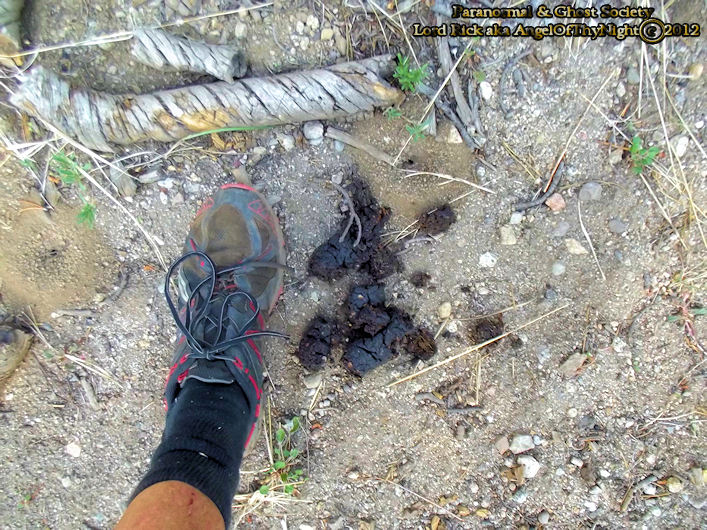 Rascal and I found our first Bigfoot track off the path like I said we were not longer on any path at all. It looked like to me their was three creeks that flowed throughout the canyon most of them were dried on up or barely flowing nothing more then a foot deep. My track we found was hidden in the woods were not even sure where but it was hidden in some thick brush measuring about 17 inches and extremely wide. It was obvious something stepped down and gave away to something very heavy. Not to far from this location we found some stool much more and larger then what any human could producer.