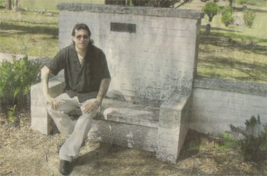 Rick Rowe sits on what may be the so-called Devil's Chair in a cemetery