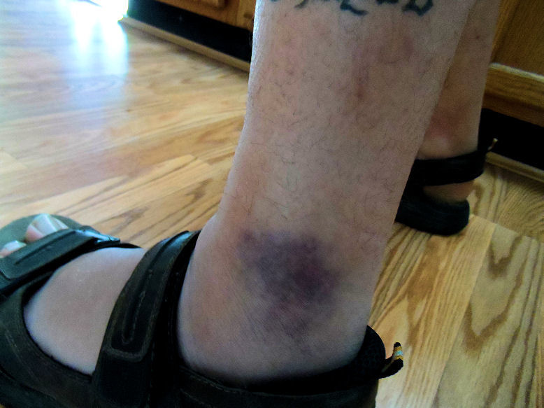 My injury I sustained on Jobs peak steep slopes allot of bruising around my ankle area. I ended up snapping my ankle to its side and rolling down a hill. Took this photo just a few hours later after my arrival home. No pain no game!