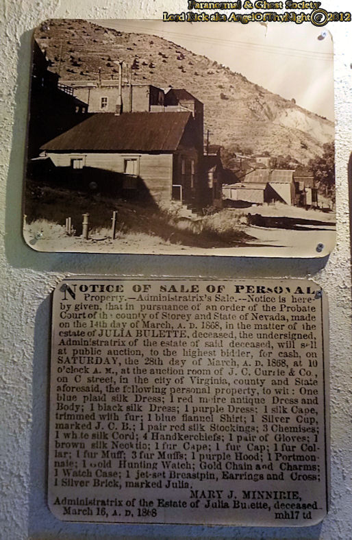 Julia is remembered for her golden heart and remains Nevada's most celebrated courtesan as people remember the request that 'her faults be buried with her and her virtues live.'" There is more information on Julia further below on this page which talks more into detail about her death, murder and life its very interesting nonetheless.