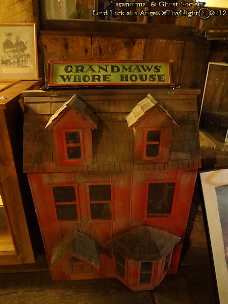 Within the collection are vibrators, cracked human skull, naughty decanters and shot glasses. Their are also displays of a murdered prostitute meant to reenact Julia's death and backroom abortion taking place. I also seen old vibrators, lubricants, condoms and photos of various prostitutes. Their are other finds such as old opium pipes, medical instruments, artifacts, contraceptives, cure-alls, dice, cards and other oddities. Allot of what has been collected came from the Red Light District and some items belonging to Julia Bulette. Her legacy continues to live on and she is buried in Flower Hill Cemetery.