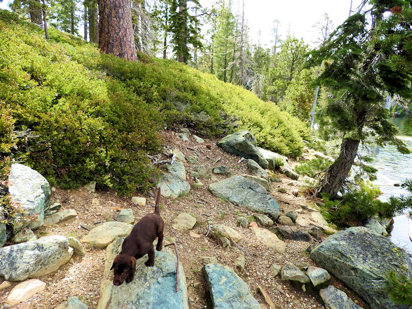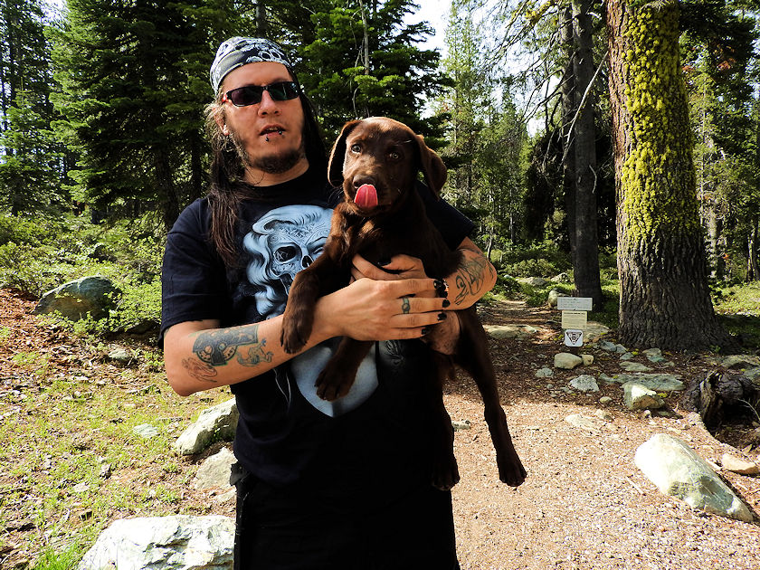 | We were greeted in the parking area by this chocolate lab puppy. Since nobody was around and he followed us everywhere we took him hiking with us trying to located his owner on the trails. Which is probably a good thing considering this puppy would have either gotten lost or been killed by a cougar. After a couple hours of hiking, swimming, carrying the pup over patches of us and spending time at Long Lake a couple walked up to us asking if we had seen a puppy somewhere on the trails. We brought this Cutie over to them and I guess the folks were friends with whoever lost the dog. I think the couple was camping or hiking did not get the entire story and the puppy took off on them. We have video footage of the entire event including when the puppy came up to us all the way to the hike and eventually reuniting this puppy with familiar faces. I come across quite a bit of things on my bigfoot jaunts its not always monsters sometimes its animals or someone's pet or someone injured etc etc. Its up to people like us to do the right thing even before chasing the paranormal that is why our organization has a good reputation over the years because we go above and beyond every single time! |