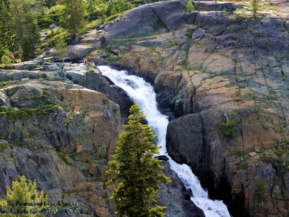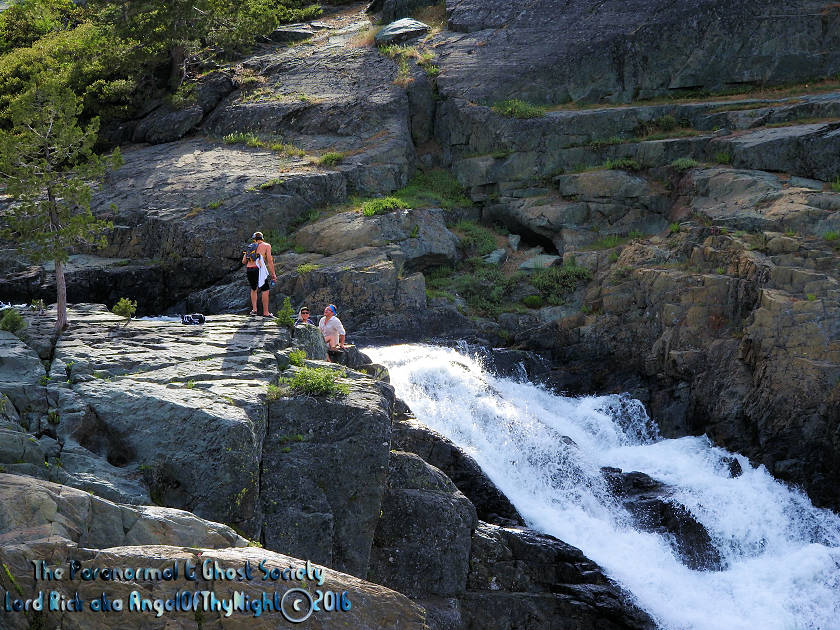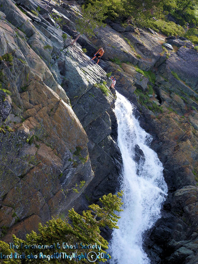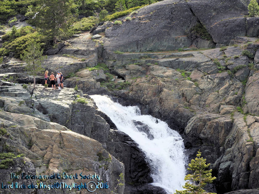 | While we may be mainly a paranormal site were also an adventure group therefore I always try to teach people about safety when it comes to journeying to these beautiful pristine locations. This is Frazier Falls as you can see this is a not a force to be reckoned with if you were to fall on into the creek, slip on a rock or foolishly decide to take a chance swim you could end up going over. According to what I have read the waterfall stands at 248' in height however the first 72' is a series of steep cascading sections then its a straight drop off for nearly 176' to the jagged rocks below. This waterfall is the gem of the Lakes Basin area. Frazier Creek begins at Gold Lake then about a mile away it continues over the cliffs and continues through the canyon. Every single year a few folks in the sierras end up hiking around or swimming around waterfalls similar to Fraziers. The end result is often death and generally the bodies sometimes are not recovered for a few days because once they hit the bottom of the falls the rapids continue to carry their bodies for miles. I took a few photos of this group of young women and men who were standing merely a few feet away from the cascading rapids. If you pay attention one of the individuals has a towel with him YES he was trying to swim and even if he was not the rocks near where they are all standing are slippery and wet. If you fell in or per say lost balance the force of the water funneling through this narrow channel are very powerful therefore there would be nothing to stop you from tumbling over the falls and certainly nothing to grab onto. At the time I was filming this it reminded me of reading a few articles about a couple deaths in the same month up in Yosemite which has some of the most majestic largest waterfalls on the planet however a 1000' or a couple hundred death is death and you will hit the rocks with the same veracity so bare that in mind. Do not swim near the falls or get near the edge I certainly do not want to be hiking and look across the canyon to see you or someone else go over the edge hitting the rocks below! |