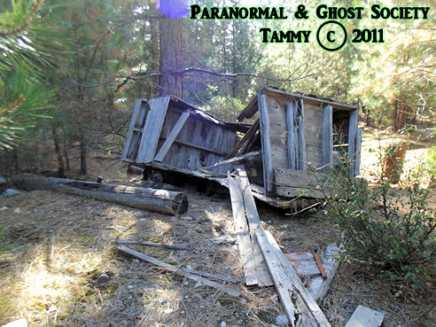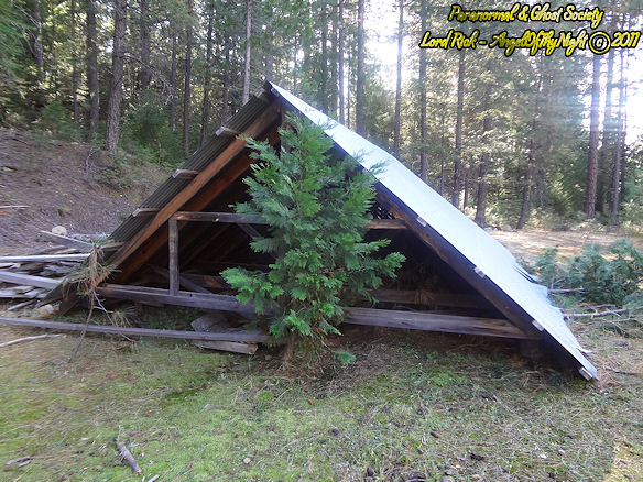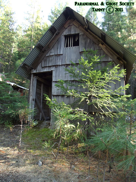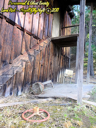 Based on my first exploration of the site I found signs that someone at one time or another was living here. There was other strange happenings such as in one of the vacant homes we heard what sounded like big heavy boots walking around. My son was chased by something coming from the woods when I sent him back to the truck to get the EMF detector just up the hill. I heard something moving around the town that sounded big we all felt watched but what really struck my fancy was we heard these banging sounds coming from woods behind the town nearby. Tammy watched a heavy wooden door that was leaning against the cellar stand up on its own then slam back down with no explanation at all not to mention how sick she became after we experienced this paranormal phenomena. I have no doubt that there are ghostly miners that still choose to haunt Last Chance but I also have no doubt that something is lurking in those woods watching perhaps even waiting. As Tammy stated our lead investigator she is totally right when she stated that for all we know something could be watching us and we would never even see who or what it is. As historically intriguing as this location is its also the type of place you will not see on television or on any paranormal show but you will see it here at The Paranormal & Ghost Society!