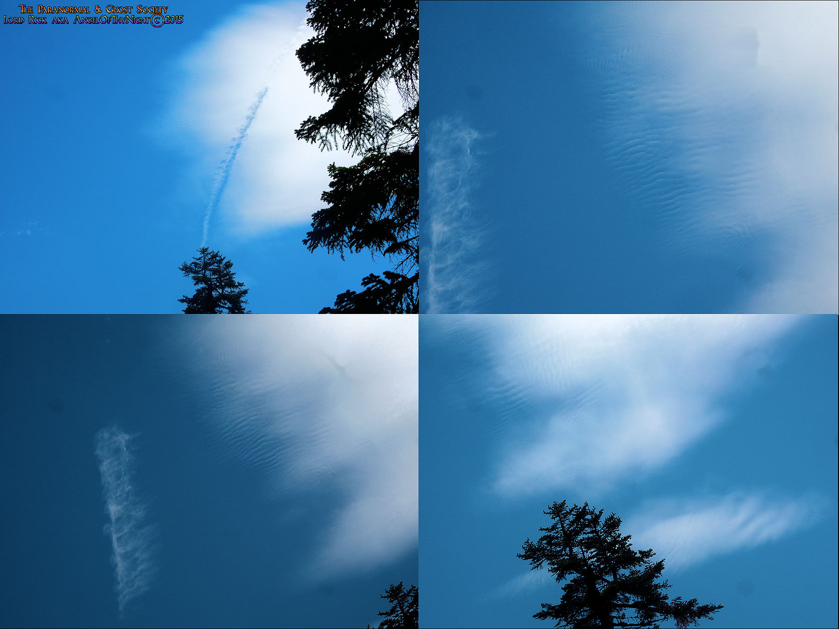 This strange corkscrew chemtrail appeared above us while we were breaking after hiking along Loon Lake to the Rubicon Trail. What makes it even more unusual is that the chemtrail is not much of a trail but rather a small spurt that rather goes for a very short distance then disappears. We never seen the craft that made it which makes me believe whatever made it was a stealth like craft. Generally most chemtrails go for many miles this one just hundreds of feet. While we sat down to eat some grub after hiking a few miles the chemtrail begin to react with the clouds in the atmosphere which caused a ripple effect. If you pay very close attention the ripples are very similar to that of the sands of the Sahara desert only in the sky. Has anyone ever seen phenomena like this? Is the government performing weather modification to counter act global warming? You Decide! Just remember whatever this may require more questions then answers and I believe what we captured is some kind of oddiity. Some might theorize its a portal or possibly some kind of chemtrail that caused a reaction within the clouds. No matter what you may or may not think don't you find it odd that whatever made this entered the cloud leaving some kind strange exhaust or reaction behind and vanished once it punched through the cloud itself? Its as if something went into the clouds and never really came out thus leaving behind some kind of trail. I believe that some UFOs that punch through our atmosphere or clouds may leave contrails behind especially if their anti gravity craft are giving off radiation, plasma or fusion particles caused by some kind of reaction that may be caused when our atmopshere interacts with it. Then again who knows maybe this is some kind of portal or something we have yet to grasp. Therefore we could tag on many numerous theories buat at this point in time its an X-File and we have also HD video footage in.