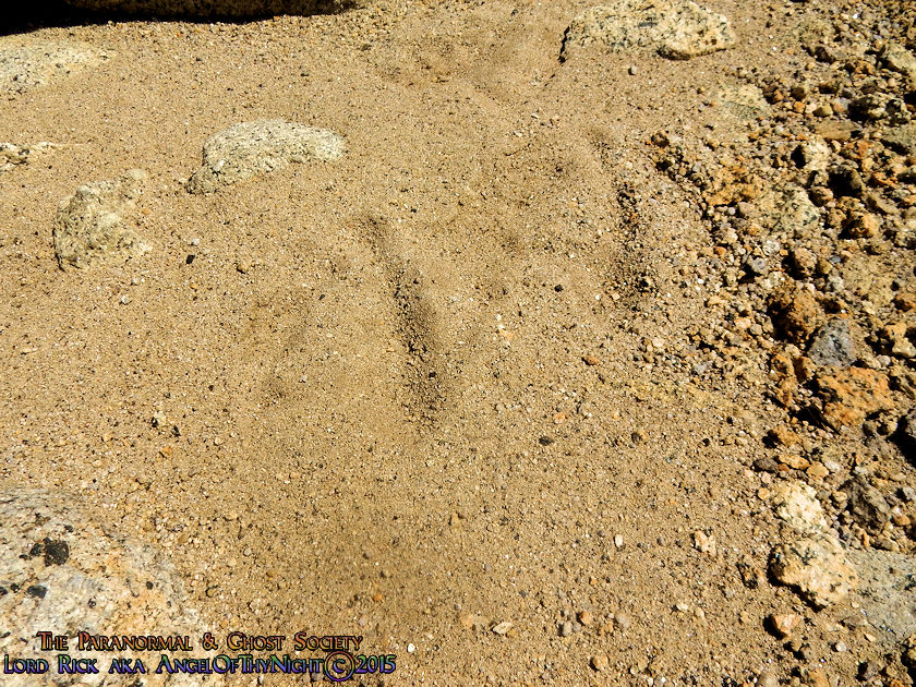 Their is nothing paranormal about these tracks as they are made by geese that scour the shores of Loon Lake. No less I wanted to share them to let our members know that I do a very thorough job checking tracks along these primitive bodies of water in the sierras. Sometimes we find tracks other times we find nothing! When I was photographing these tracks we heard some big crashing sounds in the woods followed by a very potent rotten eggs smell.