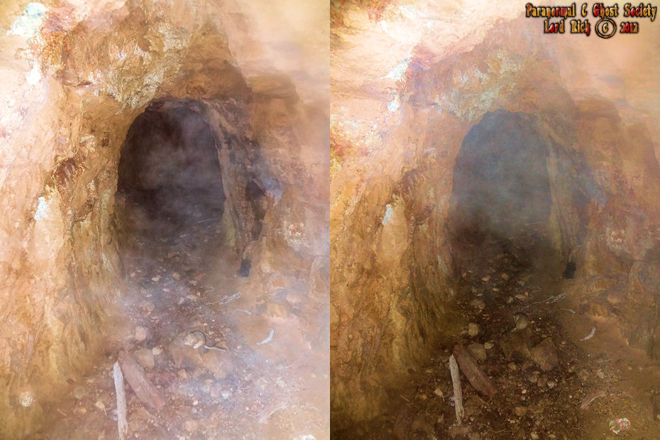 Some possible ectoplasm in the mine. Notice in both photos you can see the bushy tailed wood rat on the ground just chilling with us.