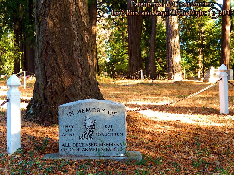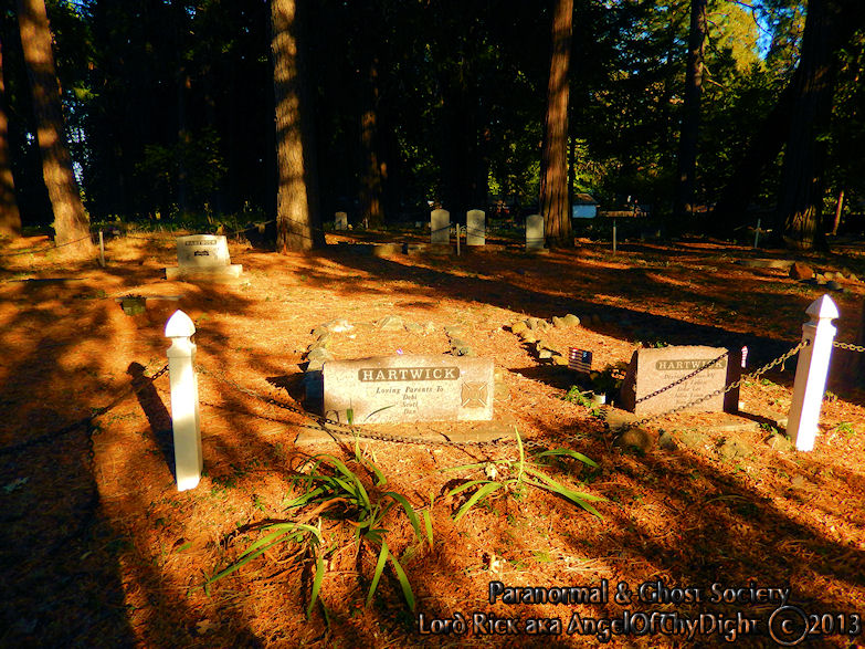 As far as it being haunted well one thing is for sure day or night one EVP and a few mild readings at least show us that its quite possible. You sometimes wonder what it would be like to be a resident and have the cemetery in your backyard. You see all the large overgrown trees which shade the entire cemetery and every gravesite will tell you a story. I mean can you imagine owning a tavern and just a matter of a few feet away pioneers who got sick or died would be buried here! So its definitely historical and resides near the historic town of Camino today. The cemetery has underwent many names of the years all the way from Hartwick, Camino, Crystal Springs, Hamilton and its original name called the Nine Mile House Cemetery. Depending locally on who you talk too all have a different name for the cemetery.