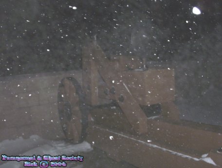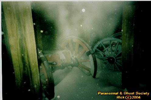 After this encounter I made my way up to another building it had some iron gates on it and a small little tunnel. The jump down was 8 feet and I figured after all that went wrong that evening it was time to almost go. I ran back to the long tunnel there was footsteps following me inside I used absolutely did not use my light and ran to the outer walls of the fort. The outer perimeter had many cannons. I ran over to the main gates then decided to head back in the fort to grab a few more quick cemetery shots and say my goodbyes. I once again went threw the tunnel took a break seen a red ball of light and a white light inside the fort.