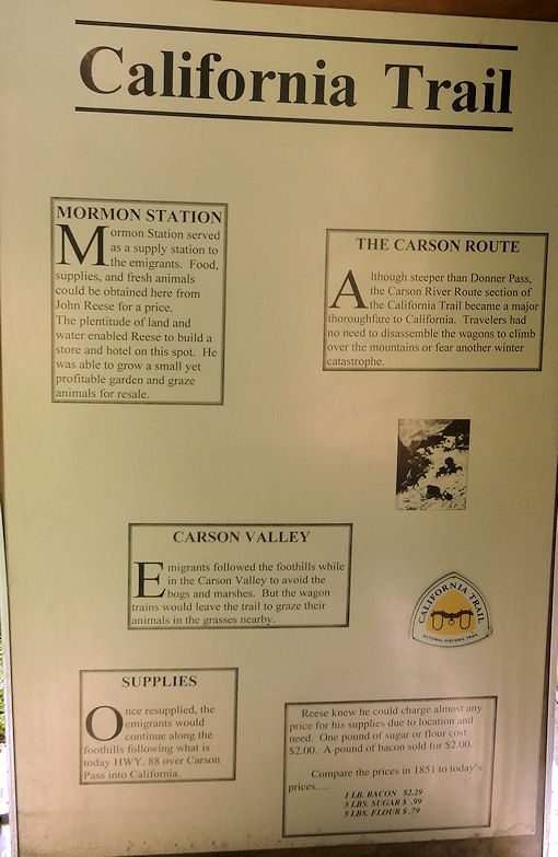 After the trading post was abandoned in June of 1851 a John and Enoch Reese along with a man by the name Kinsey loaded over a dozen wagons filled with supplies. They then made the trek to set out for the Carson Valley. The Reese Company built a permanent trading post just a mile away from the temporary one established by Blackburn, Beatie & Dumont. The Station added a blacksmith shop, flour mill, hotel, store, saw mills and even a livery stable nearby. The ground here was also very fertile with the Carson River meandering through the area there were many lakes and methods to irrigate the land for crops. Thus the Genoa area you see today had grown as merchants poured in along with many Mormon settlers under the direction of Utah's Governor Brigham Young. The residents in the Carson Valley established a Mormon Government who named this area Carson County Utah by the Utah Territorial Legislature who organized all of this. Mormon Apostle Orson Hyde was to appointed to act as a spiritual figure of the community as a probate judge.