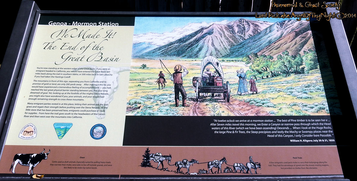 During this time the Comstock Lode was booming in Virginia City Nevada thus Genoa remained an important center of activity for freight and passenger traffic. Unfortunately when the Central Pacific Railroad and Virginia Truckee Railroad was constructed the county seat was moved from Genoa to Minden in 1916.  Prior to this in 1910 many of the historic buildings including the abandoned fort were burned down in a great fire.  What did not get hit by the fire stood vacant afterwards while today only some of the historic structures and sites remain in tact but no less Genoa is still a strong symbol of the American West which is why it is so relevant to add the Mormon Fort Station to our site so we can educate but also bring you a variety of elements such as the ghosts, history, nature, travesties and some well known historic figures that are connected to the Mormon Fort Station which became the Genoa you see today that even includes the Hot Springs which at night cover the road with this steam its pretty wicked.